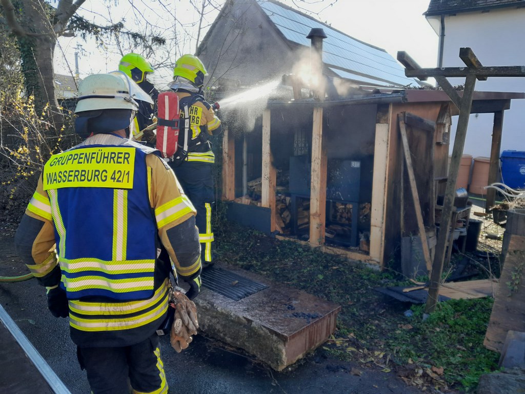 In einem Schuppen brannte dort gelagertes Brennholz in der Nähe eines Holzofens.