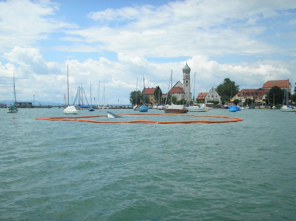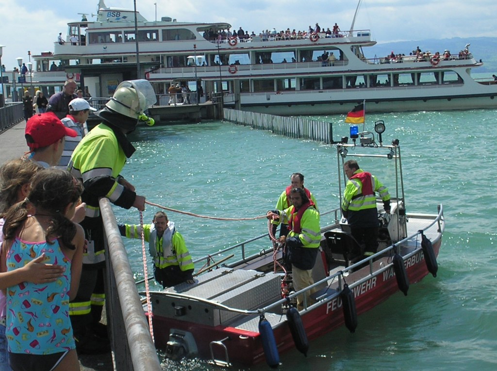 Eine undichte Gummidichtung ist vermutlich die Ursache für das Kentern eines Motorbootes im Hafen von Wasserburg gewesen. Durch den Ruf „gekentertes Boot“ alarmierte gestern am späten Vormittag die Lindauer Wasserschutzpolizei die Wasserwacht. Nach Kontrolle der Unfallstelle informierte diese die Wasserburger Feuerwehr. Um auf Nummer sicher zu gehen, legten die Einsatzkräfte eine Ölsperre um das gekenterte Boot. Vier Taucher der Wasserwachten aus Lindau und Weiler bargen das Boot, von dem nur noch die Spitze aus dem See ragte. Mittels Hebekissen hoben Wasserwacht und THW das Motorboot. Klar, dass die Urlaubsgäste lebhaft an dem Einsatz im Wasserburger Hafenbecken Anteil nahmen. Seitens der Wasserwacht waren insgesamt 13 Hilfskräfte im Einsatz, die Wasserburger Feuerwehr kam mit 15 Männern und Frauen. Vom THW lieferten außerdem noch zwei Vertreter Material zur Bergung.
