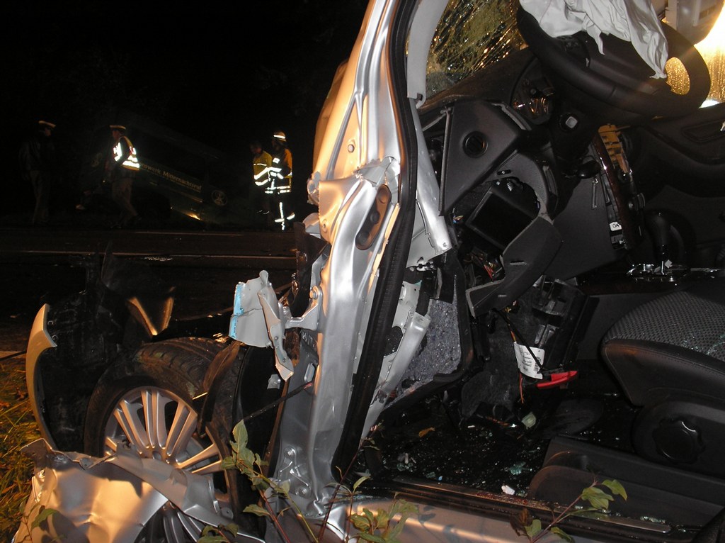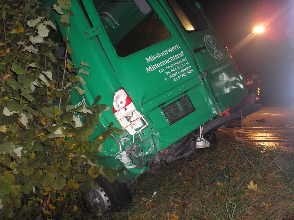 Dabei wurde der Wagen so stark deformiert, dass der verletzte Fahrer eingeklemmt war und durch die Feuerwehr befreit werden musste. Im Einsatz waren Kräfte aus Wasserburg und der Wache West mit insgesamt 30 Mann und fünf Fahrzeugen. Er wurde schwer verletzt in die Klinik in Friedrichshafen gebracht. Die beiden Benutzer des Transporters, die sich ebenfalls verletzten, wurden im Krankenhaus in Lindau behandelt. An beiden Fahrzeugen entstand Totalschaden. Die Kreisstraße musste in der Nacht für zwei Stunden gesperrt werden.