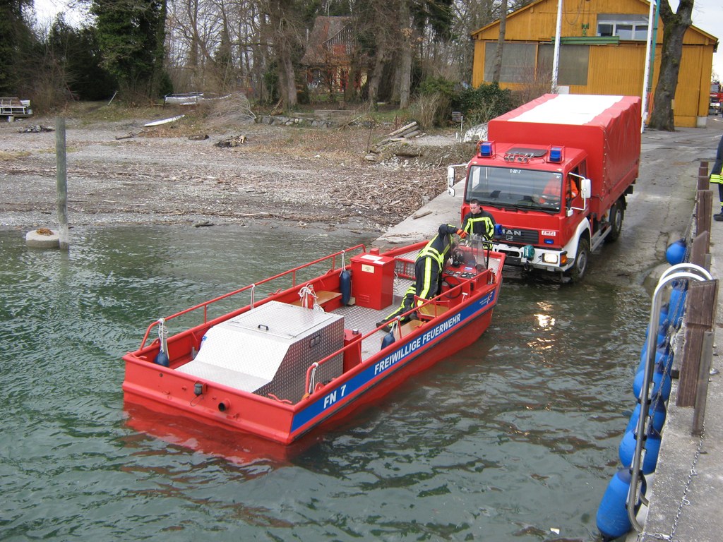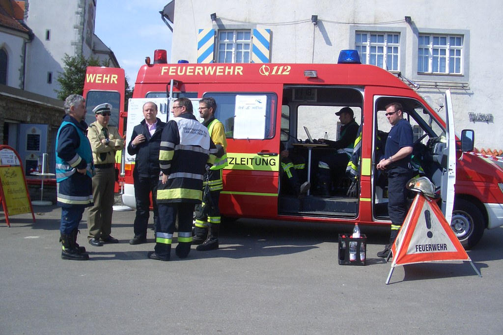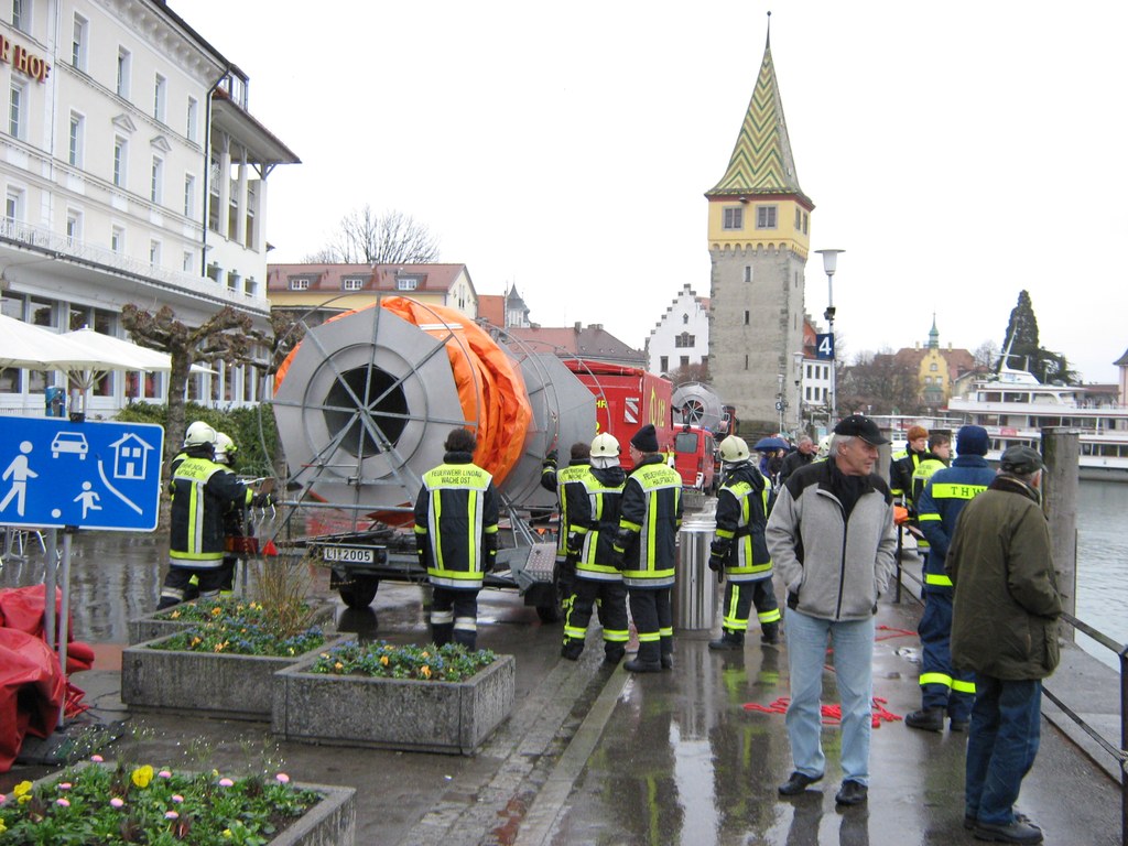 Die Einsatzkräfte arbeiten unter Zeitdruck: Der Wetterbericht kündigt fürden frühen Nachmittag starken Regen und bis zu fünf Windstärken an.Kreisbrandrat Friedhold Schneider ist in diesem Augenblick riesigfroh,dass die Einsatzkräfte von rund um den Bodensee erst im vergangenen Sommergenau diesen Ernstfall geübt haben. Das zahlt sich jetzt aus, auch diedamalige Manöverkritik: Alle arbeiten Hand in Hand, und schon inWasserburg hat Kainz die Order gegeben, dass alle Einheiten auf der selbenFunkfrequenz erreichbar sein müssen.