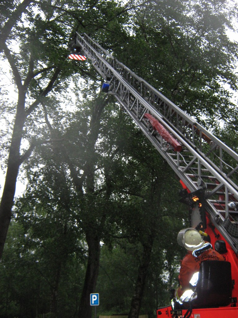 Am Parkplatz Hegestüble und dem Weg Richtung Nonnenhorn hingen mehrere große Äste ungesichert in den Baumkronen der dort stehenden Bäume, da diese entfernt werden mußten wurde durch den Einsatzleiter die Drehleiter der Feuerwehr Lindenberg angefordert um hier tätig zu werden, alle näher stationierten Drehleitern waren nicht verfügbar und bereits in andere Einsätze eingebunden. Mit Hilfe der Kameraden aus Lindenberg wurden die losen Äste entfernt so das der Parkplatz nun gefahrlos betreten werden konnte. Auch weitere große Äste wurden durch die Einsatzkräfte in diesem Bereich von der Straße entfernt, durch immer wieder herabstürzende lose Äste bestand in diesem Bereich Lebensgefahr für die Passanten. Da Fahrradfahrer weitere große Äste in Richtung Nonnenhorn meldeten wurde durch die Feuerwehr Wasserburg die Feuerwehr Nonnenhorn nachalarmiert die die Kontrolle der Nonnenhorner Seite sowie die Vollsperrung übernahm.