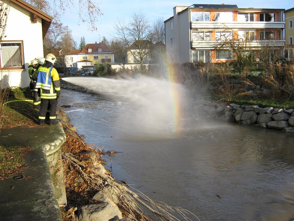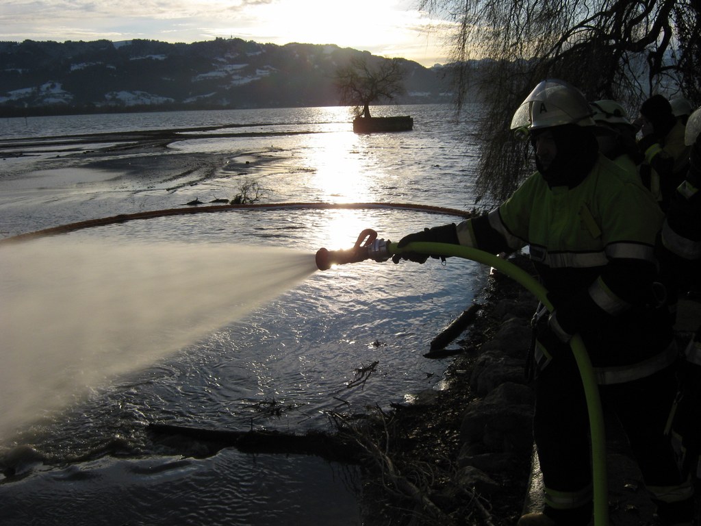 Als zusätzliche Sicherungsmaßnahme wurde um 04:51 Uhr die Feuerwehr Wasserburg alarmiert, mit dem Auftrag, an der Mündung der Ach in den Bodensee die Ölsperre einzubringen.