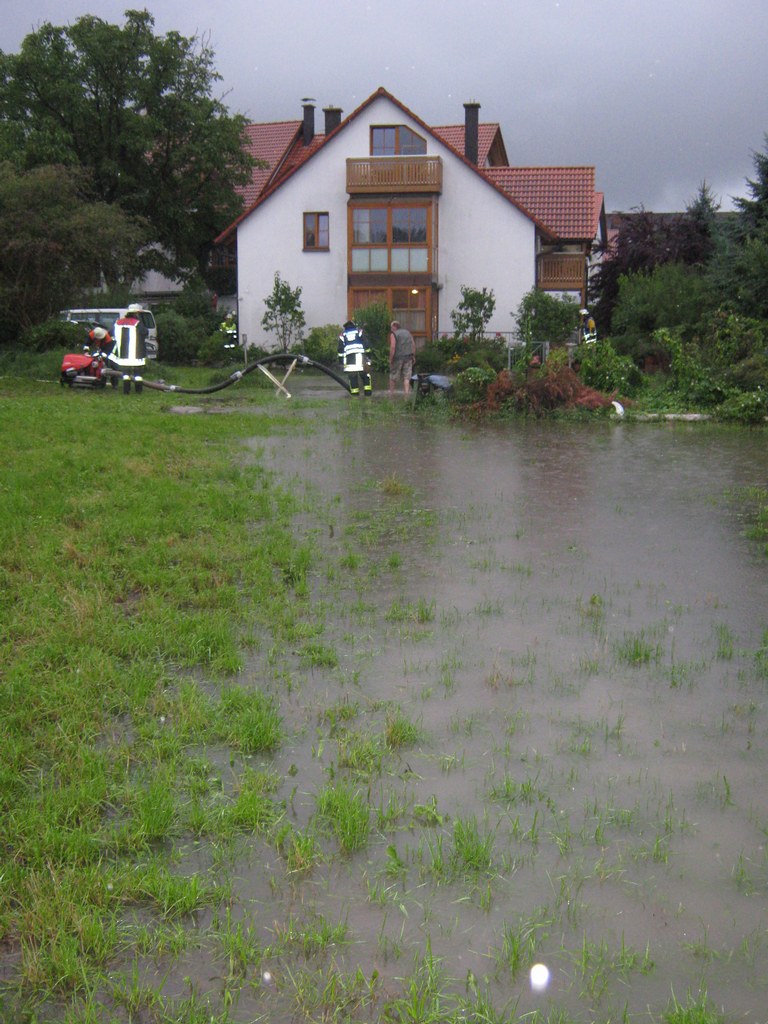 Am Donnerstag, 05.08. wurde nach den erneut schweren Starkregenfällen gegen 18.30 Uhr die Feuerwehr Wasserburg zur Unterstützung der Feuerwehr Hege alarmiert.
