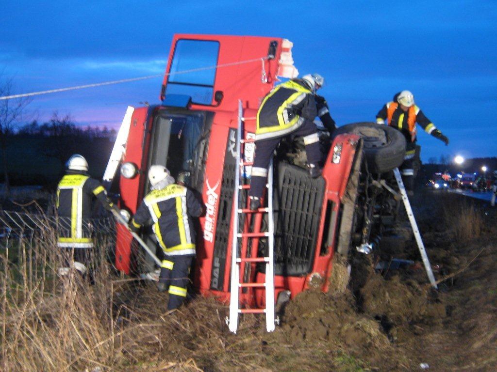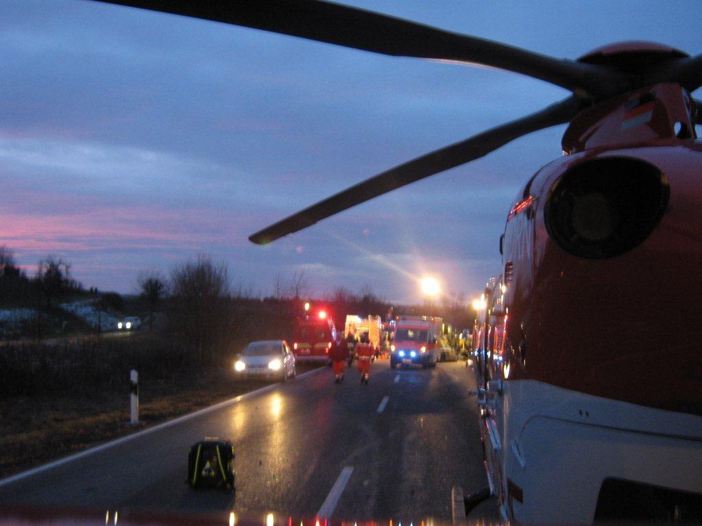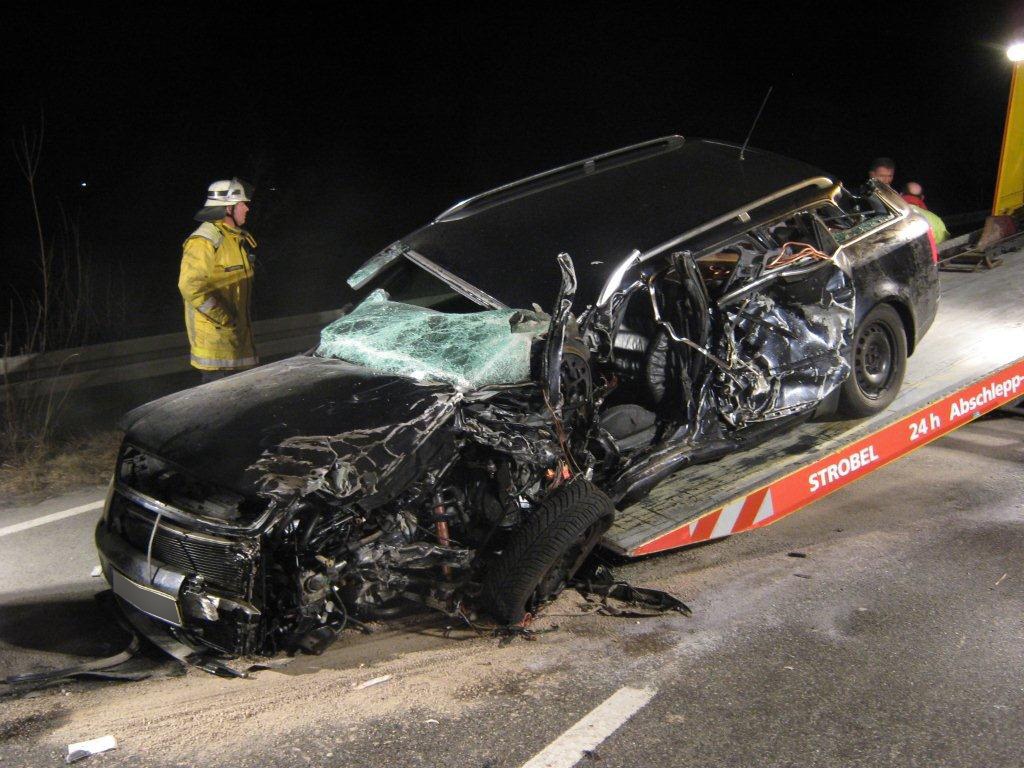 Der Lastwagenfahrer konnte weder ausweichen noch bremsen. Der Verursacher wurde eingeklemmt und von der Feuerwehr aus dem Wagen geschnitten. Er wurde schwer verletzt mit dem Hubschrauber ins Krankenhaus geflogen. Sein Beifahrer und der auf der Rückbank sitzende acht Jahre alte Sohn wurden vorsorglich ins Krankenhaus gebracht, sie kamen laut Polizei aber wohl mit dem Schrecken davon.