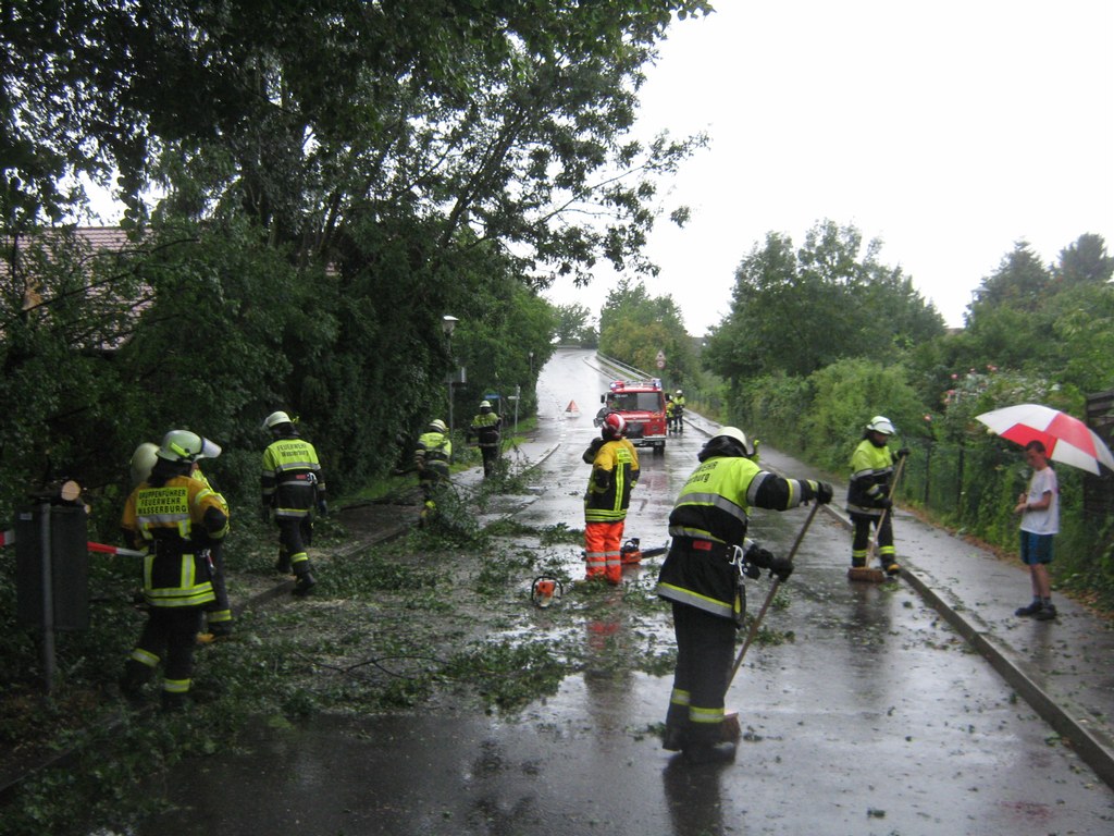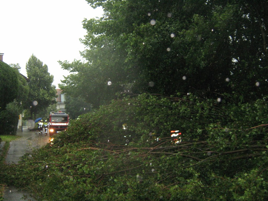 Am 10.07.2011 um ca. 17:00 wurden wir von der ILS Allgäu zu einem umgestürzten Baum gerufen. Das Unwetter das auch über Wasserburg gezogen ist, hat seine Spuren hinterlassen. Die Bahnhofstraße war komplett blockiert.