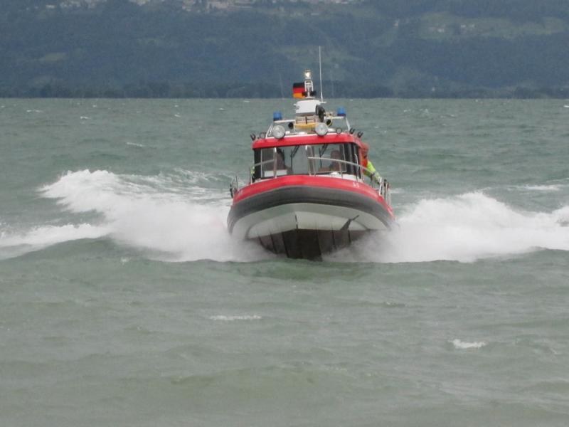 Sofort lief das Feuerwehr Mehrzweckboot "Eberhard" aus und begann mit der Suche, einige Kilometer weiter Richtung Seemitte wurden die Einsatzkräfte dann fündig. Der Segler war im aufkommenden Sturm bereits vor 2 Stunden gekentert und konnte den Katamaran nicht mehr selbst aufrichten, er trieb dann im kalten Wasser mit seinem Katamaran bis zum Eintreffen der Wasserburger Feuerwehr. Sofort wurde der Mann auf das Feurwehrboot in Sicherheit gebracht, um den Katamaran kümmerte sich die mittlerweile ebenfalls eingetroffene Wasserwacht Lindau mit dem Einsatzboot "Seewolf".