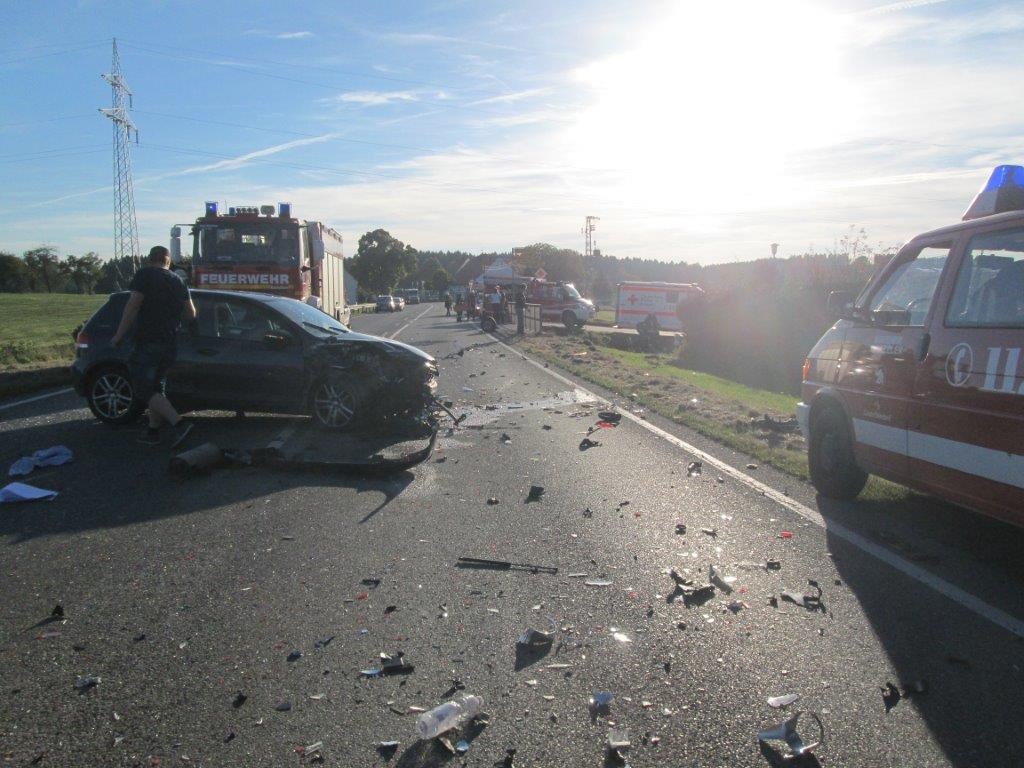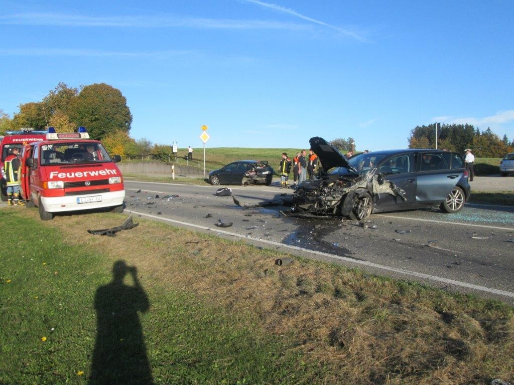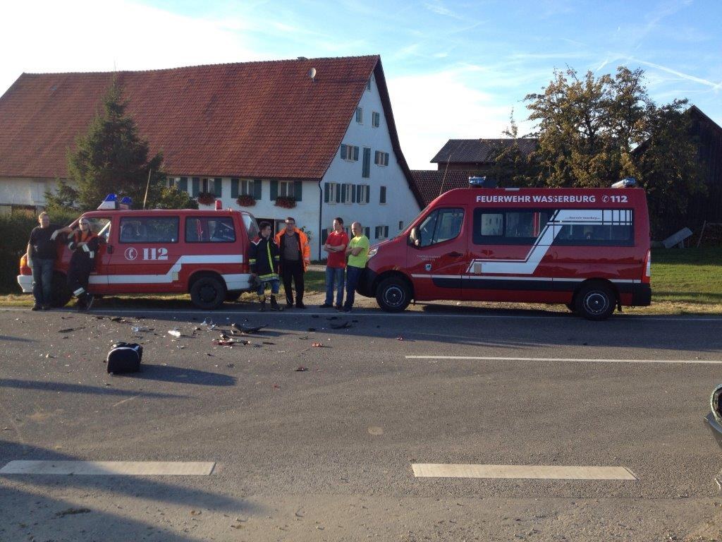 Auf dem Heimweg von der Ausbildung im Brandcontainer bei der Fa. Erhatec auf der Schwäbischen Alb kamen die Feuerwehren Wasserburg, Hege und die Werkfeuerwehr Metzeler als Ersthelfer zu einem schweren Verkehrsunfall auf der B30 bei Bad Waldsee, Ortsteil Mattenhaus.