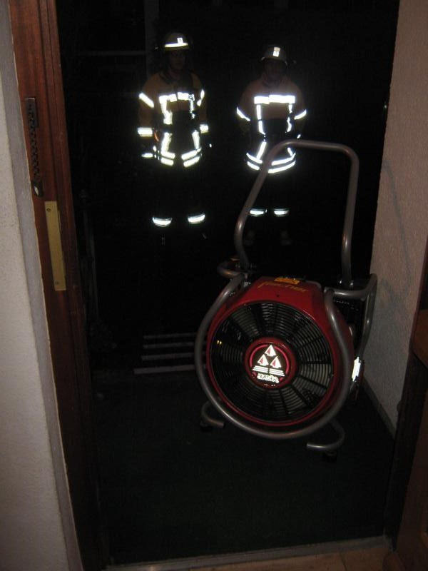 Durch eigene Löschversuche war das Feuer mitlerweile soweit im Griff das durch die Feuerwehr Bodolz nur noch Nachlöscharbeiten durchgeführt werden mußten, außerdem wurde mit der Wärmebildkamera nach eventuell vorhandenen Glutnestern gesucht. Die Feuerwehr Wasserburg übenahm mit einem Hochleistungslüfter die Entrauchung des Gebäudes.