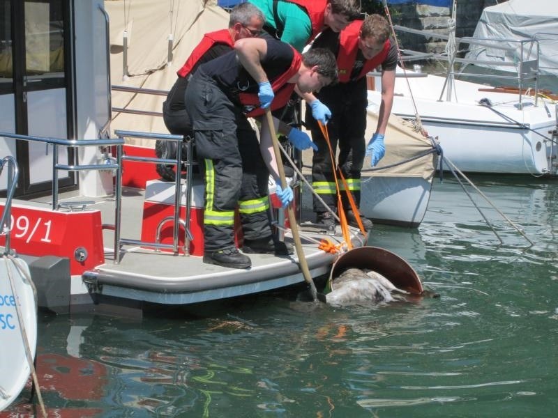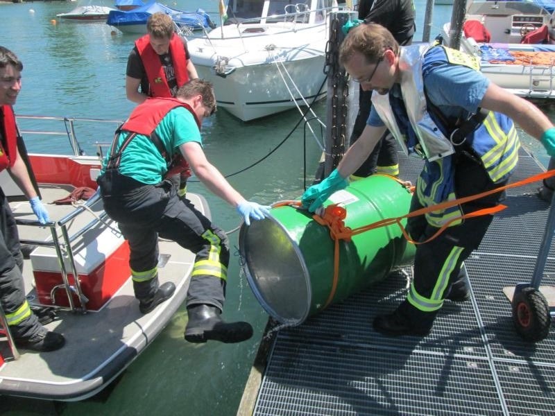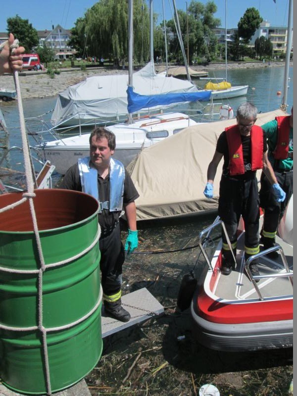 Im Wasserburger Hafen trieb eine tote Gams. Das tote Tier lag offensichtlich schon einige Tage im Wasser. Der Verwesungsprozess war bereits im Gange. Vorsichtig haben wir das Tier in einem großen Fass aufgenommen. Dieses wurde mit einem Deckel versehen. Der Gemeindliche Bauhof übernimmt die Entsorgung.
