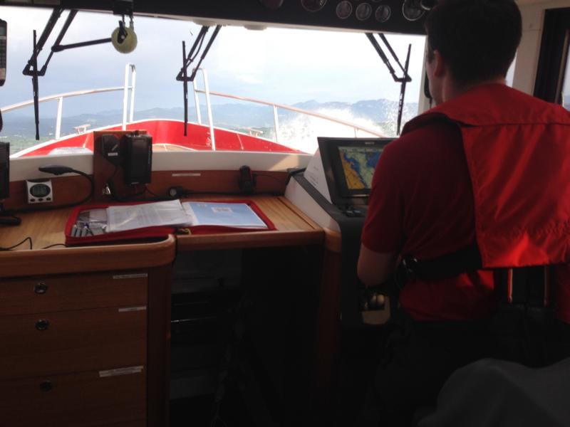 Über Funk haben wir Kontakt zu Wasserwacht Lindau aufgenommen. Wir wurden daraufhin gebeten vor Wasserburg nach einer Segelyacht Ausschau zu halten, die dort den Sturm abwetterte. Der Bootsführer (3 Personen an Bord) gab uns zu verstehen, dass bei ihm an Bord alles in Ordnung war.