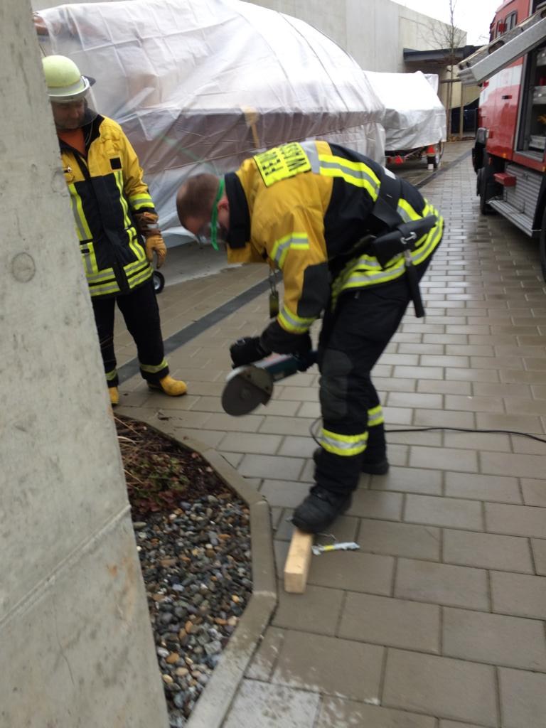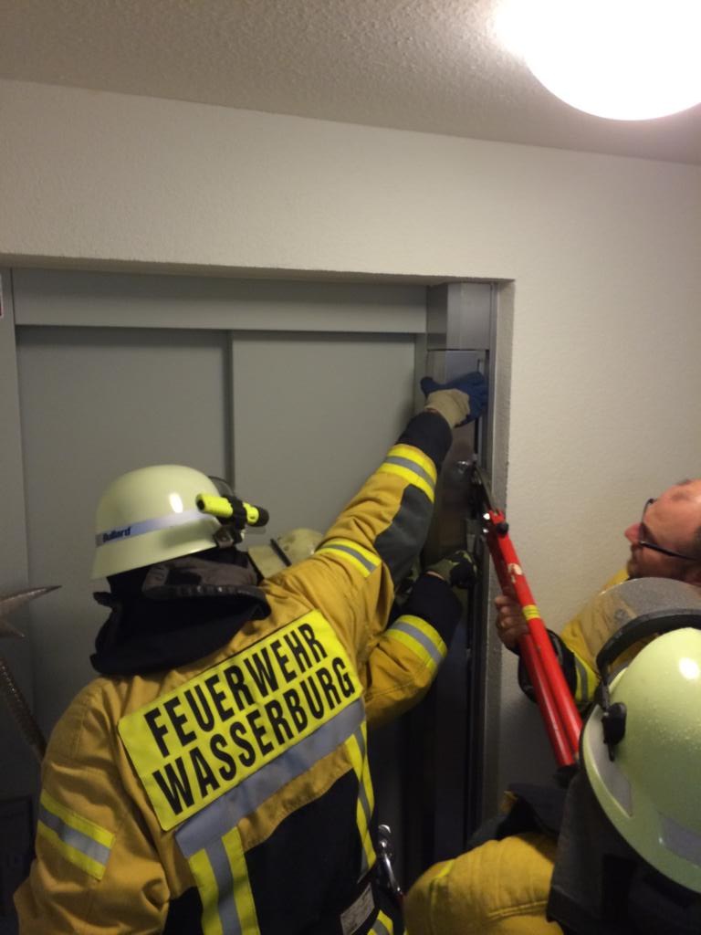 Eine Person war bereits über eine Stunde in einem defekten Aufzug eingeschlossen, erst nach dieser langen Zeitdauer verständigte der Sicherheitsdienst des Aufzugbetreibers die Feuerwehr. Da auch über die Aufzugsfirma zeitnah kein Techniker mit passendem Schlüssel erreicht werden konnte und der Gesundheitszustand des eingeschlossenen Mannes sich zusehends verschlechterte wurde durch die Feuerwehr die Steuerzentrale des Aufzugs gewaltsam geöffnet und die Türe geöffnet. Der Mann konnte dann zeitnah an den hinzugerufenen Rettungsdienst übergeben werden.