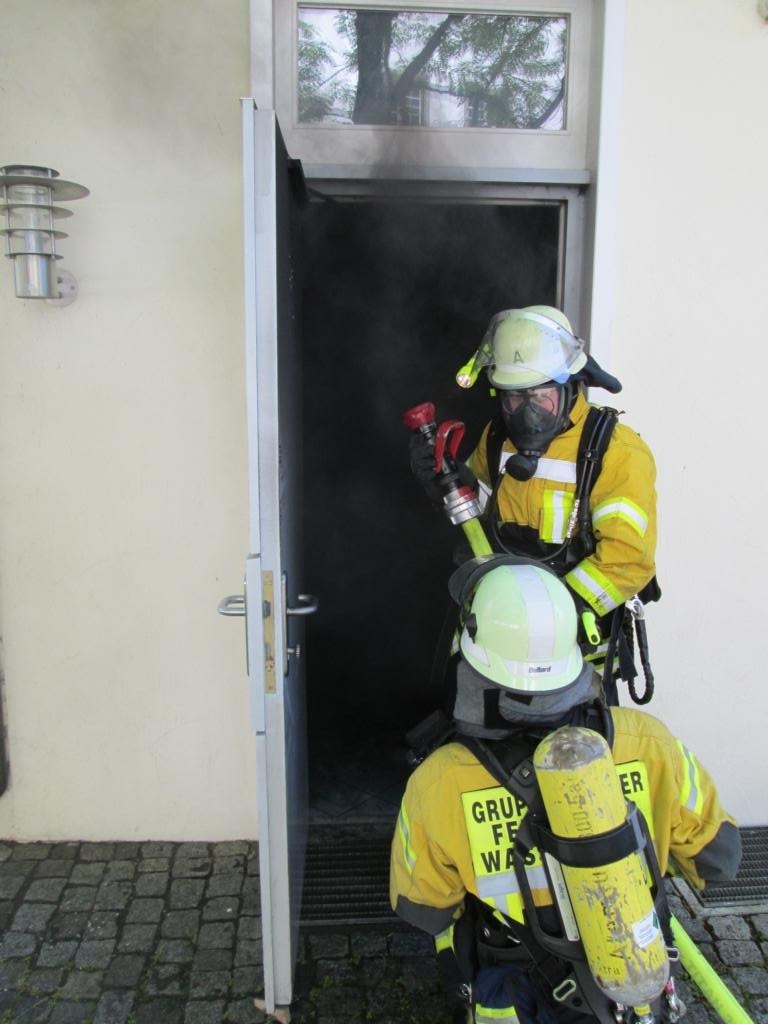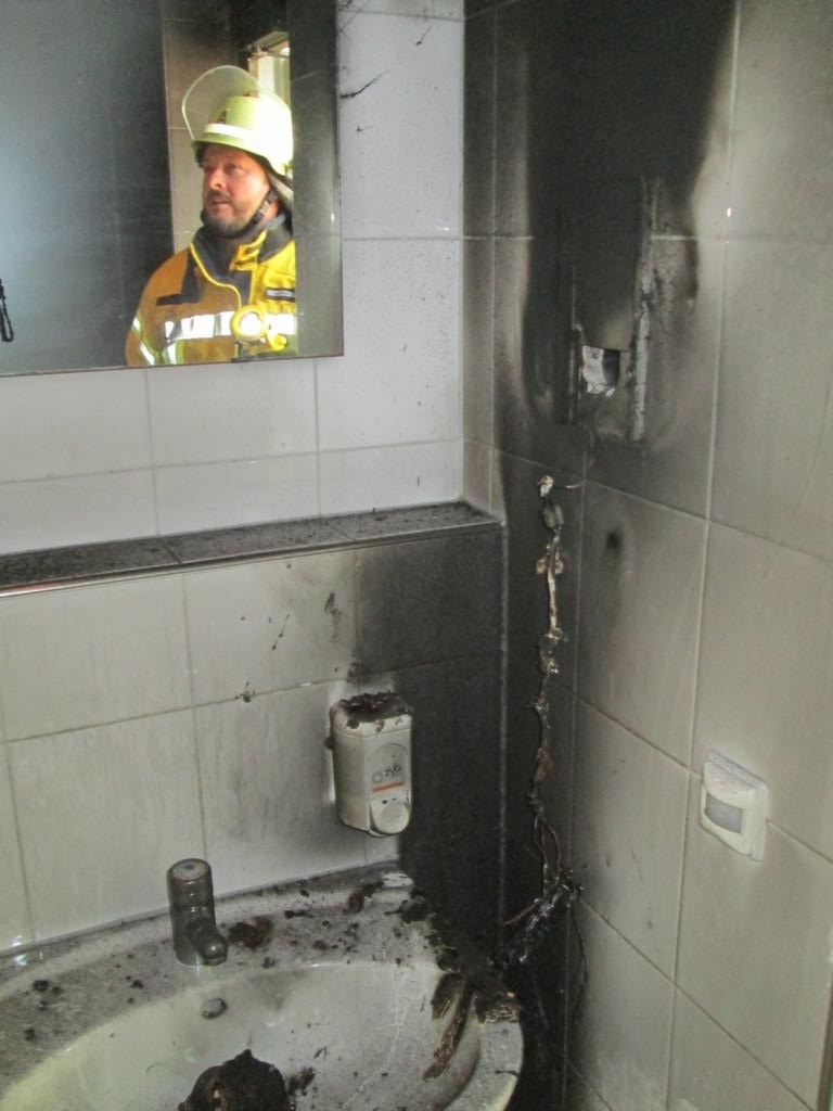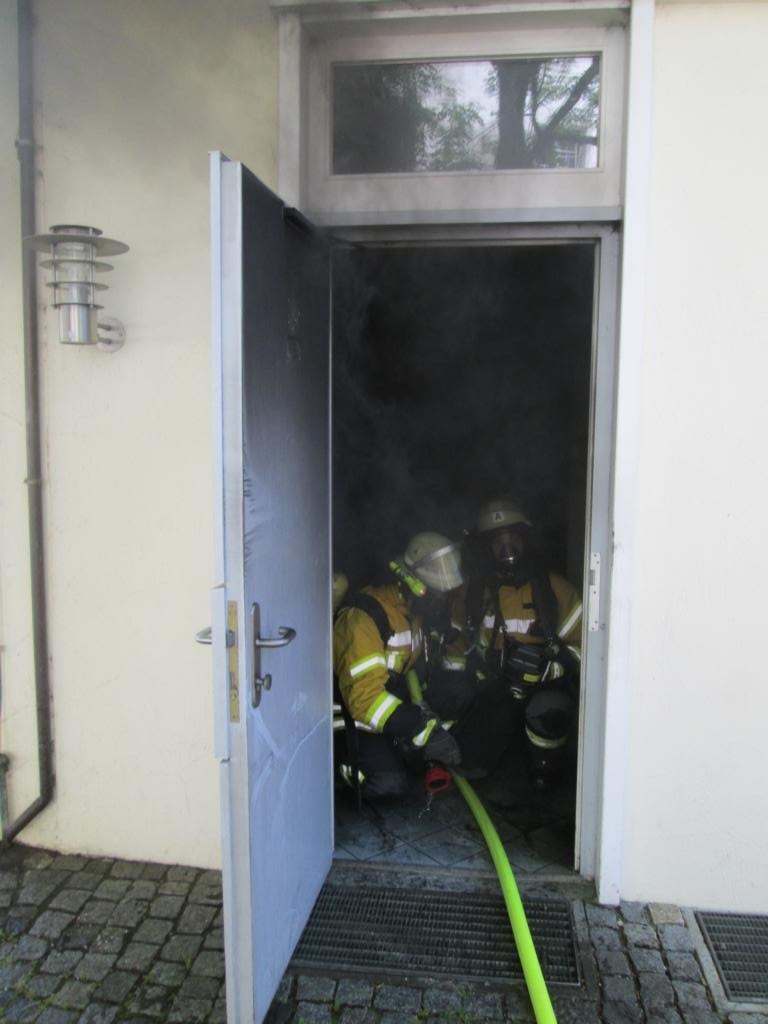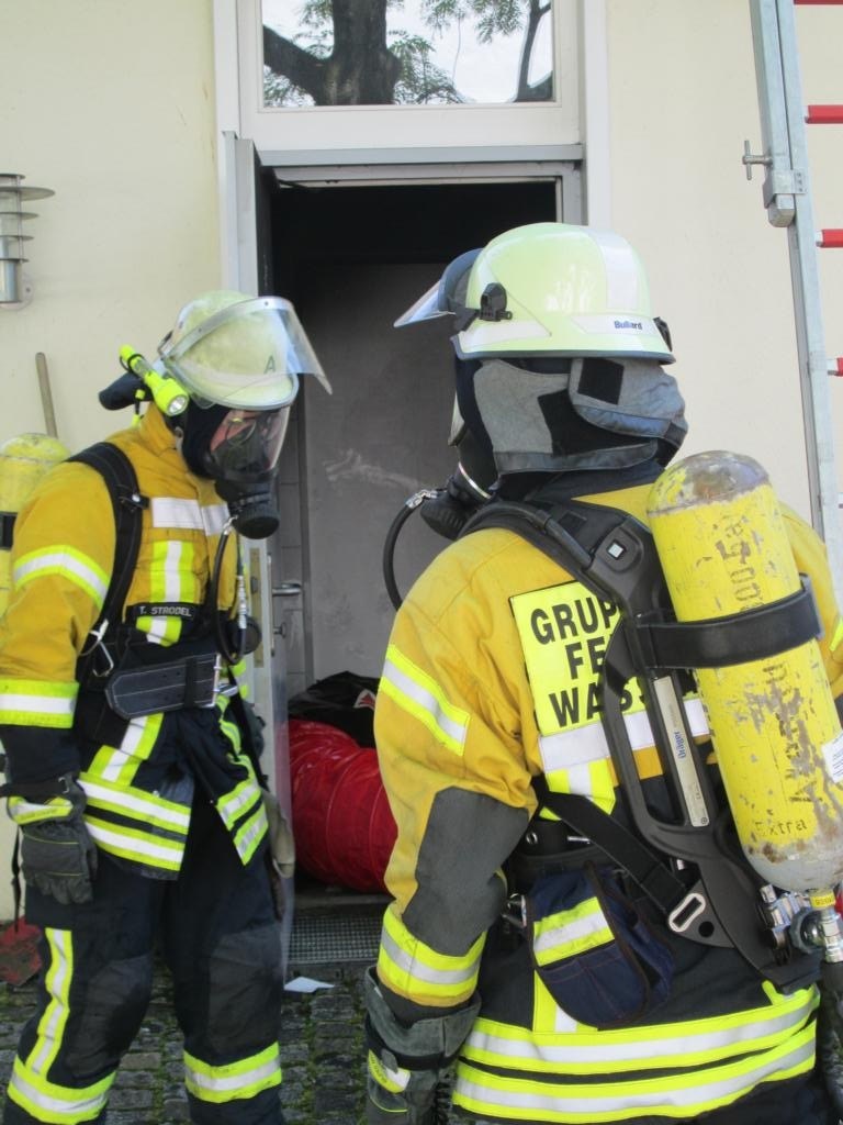 Mittels einem C-Rohr war das Feuer im Bereich des Händetrockners schnell durch die Besatzung des ersteintreffenden Hilfeleistungslöschfahrzeuges gelöscht. Anschließend wurden die betroffenen Räumlichkeiten belüftet, umliegende Räume und die Abluftführung kontrolliert, der Bereich stromlos geschaltet und die Räumlichkeiten anschließend an den Leiter des Bauamtes der Gemeinde Wasserburg, welche Eigentümer der Räumlichleiten ist, übergeben.