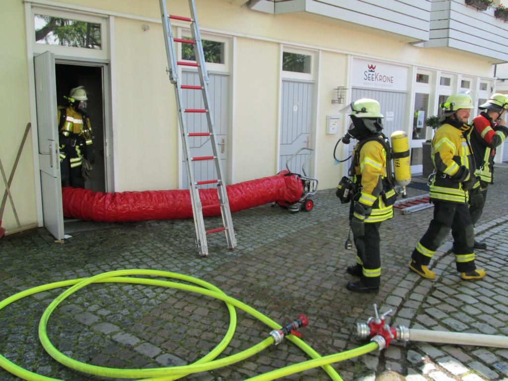 Nach einer knappen Stunde konnte die Feuerwehr Wasserburg wieder einrücken, die Feuerwehr Lindau, von der die Drehleiter zur Unterstützung mit alarmiert wurde mußte nicht mehr eingreifen. Die Brandursache wird von der Polizei ermittelt.