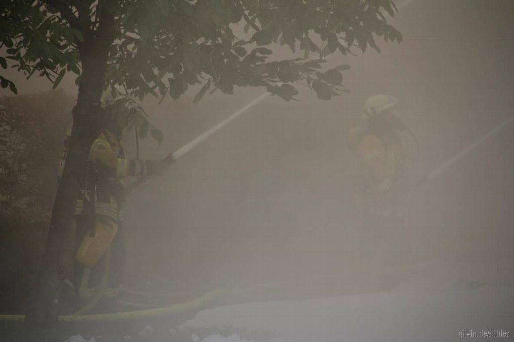 Kurz vor 17 Uhr wurden die Einsatzkräfte der Kressbronner Feuerwehr alarmiert: Feuer in ihrer eigenen Wache. Als die ersten Kameraden dort eintrafen, standen die Fahrzeuge in der Halle bereits in Vollbrand. Ein Durchkommen zur persönlichen Ausrüstung war ebenfalls nicht mehr möglich, so dass die Wehrleute quasi zur Untätigkeit verdammt waren. Lediglich ein Materialtransportwagen war noch zugänglich, da er außerhalb der Halle abgestellt war. Während die Kressbronner dieses Fahrzeug dazu nutzten, eine Einsatzleitung aufzubauen, eilten aus dem Umland die Kollegen herbei: aus Tettnang, Eriskirch, Langenargen, Lindau, Wasserburg, Nonnenhorn und sogar aus Markdorf, weil sich dort das zentrale Lager für Atemschutzgeräte befindet. Dass eine ganze Menge solcher Geräte nötig sein würden, ließ die riesige Rauchwolke um und über dem Feuerwehrhaus schnell erahnen.