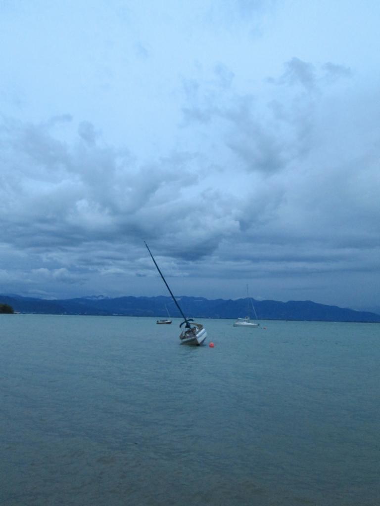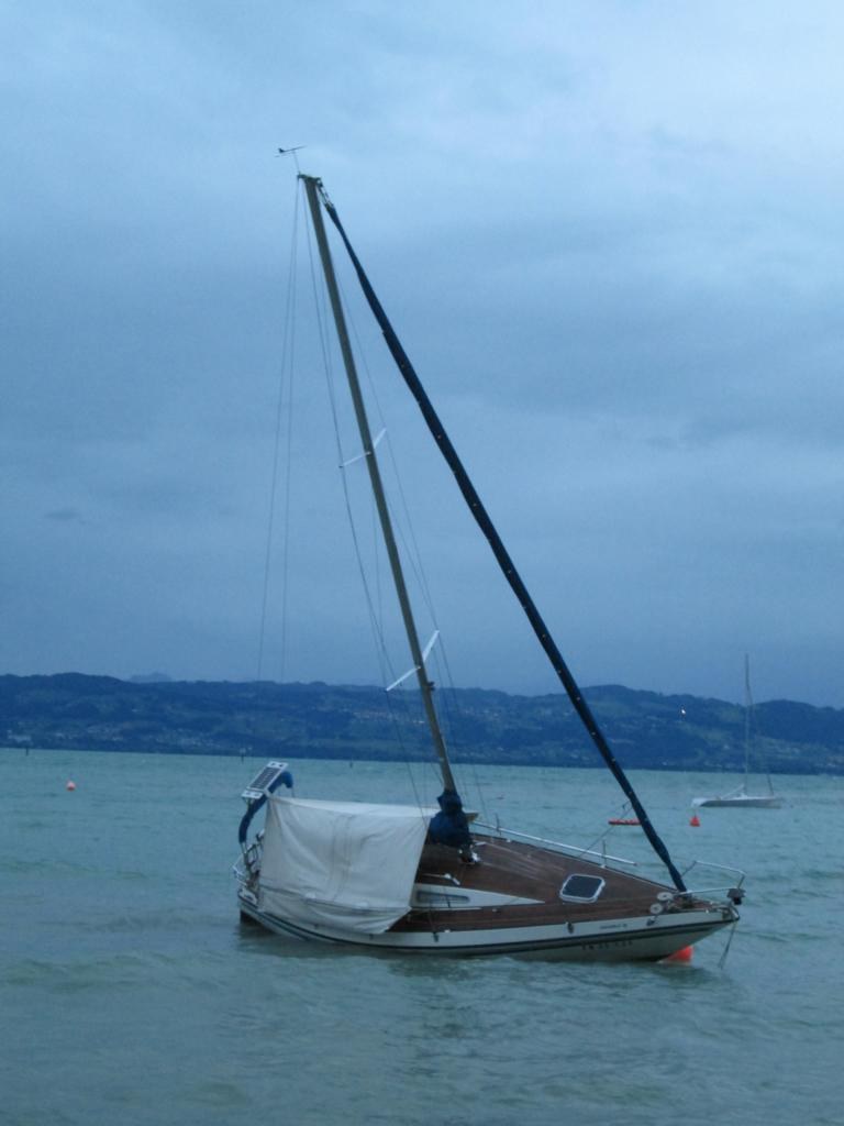 Zu einem losgerissenen Boot wurde die Feuerwehr Wasserburg am 28.06.2017 um 21.15 Uhr alarmiert. Im Gewittersturm der zuvor über den Ort zog hatte sich ein Segelboot mitsamt Boje im Hafen losgerissen und war weiter östlich im Bereich der Uferstraße an Land gespült worden.