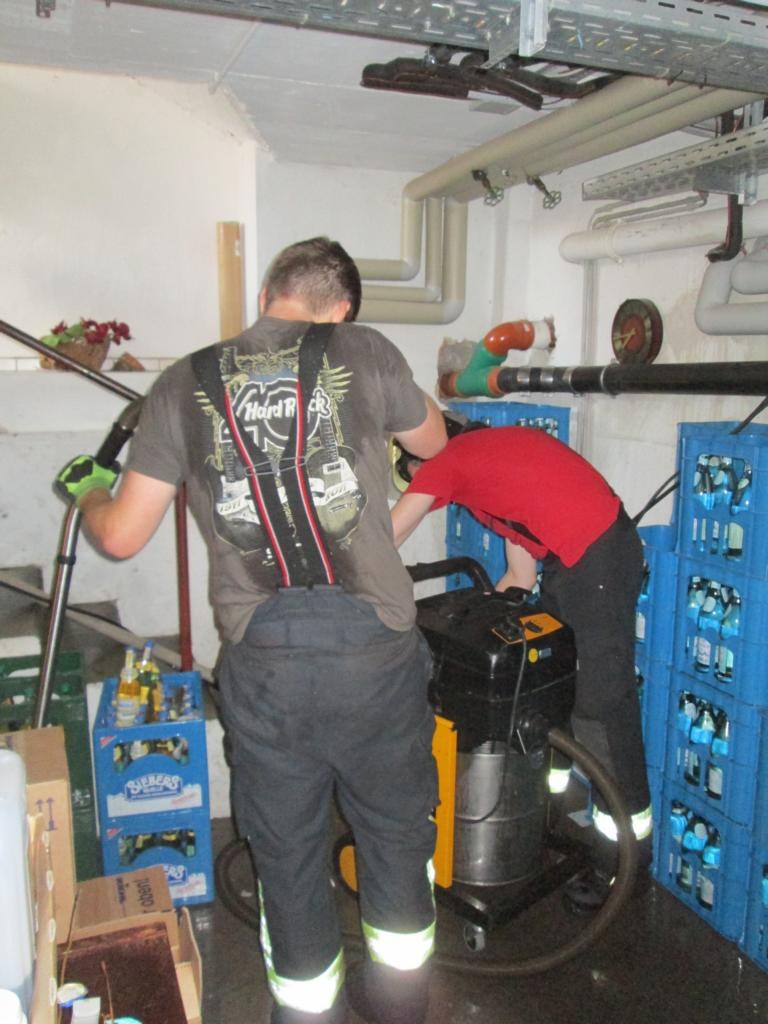 Am Samstag, 08.07.2017 um kurz nach 8 Uhr wurde die Feuerwehr Wasserburg erneut zum Einsatz gerufen, nach einem Rohrbruch in einem Hotel stand der Keller großflächig 20cm unter Wasser. Es drohte ein Ausfall der Kühlgeräte und hoher Sachschaden an den im Keller gelagerten Vorräten. Umgehend wurden durch die Besatzungen der beiden Löschfahrzeuge 2 Tauchpumpen und 2 Wassersauger vorgenommen, trotzdem dauerte es fast 2 Stunden bis die Wassermassen aus dem Keller entfernt waren.