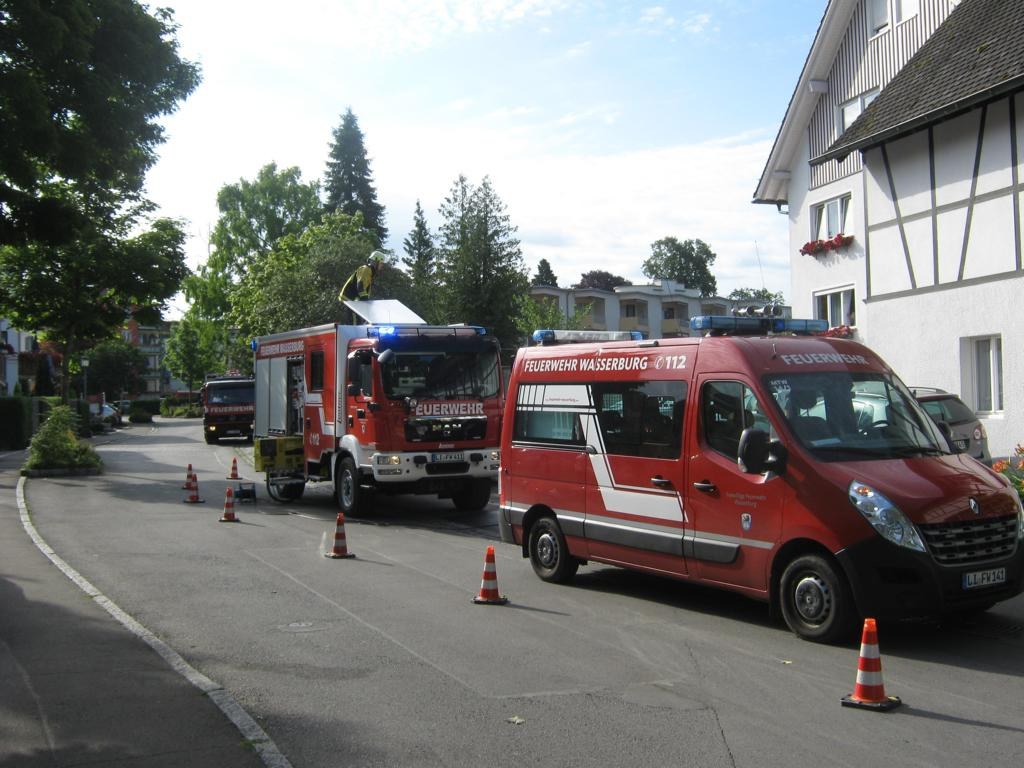 Am Samstag war die Feuerwehr Wasserburg mit 3 Fahrzeugen und 19 Mann im Einsatz, zur Türöffnung war zusätzlich die Polizei Lindau mit einem Streifenwagen vor Ort.