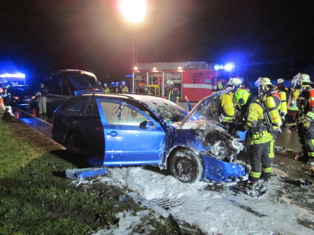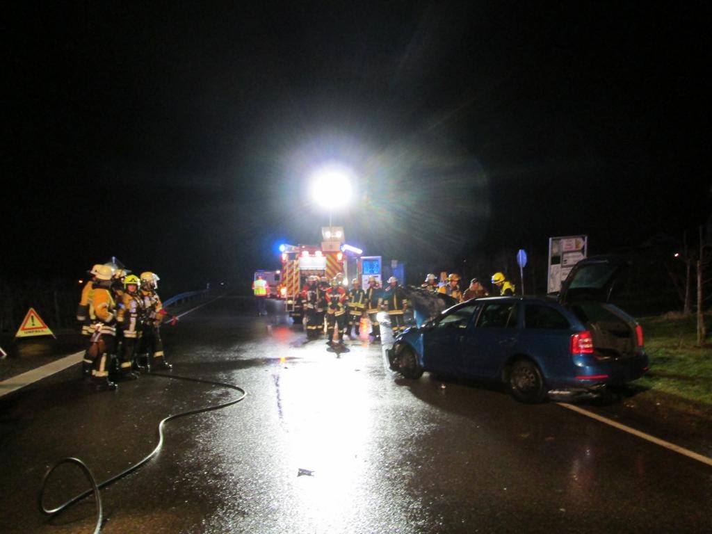 Am 19.01.2018 wurden die Feuerwehren Hege und Wasserburg gegen 20.15 Uhr zu einem Verkehrsunfall mit brennendem PKW auf die LI16 in Höhe der Abfahrt Hege gerufen.