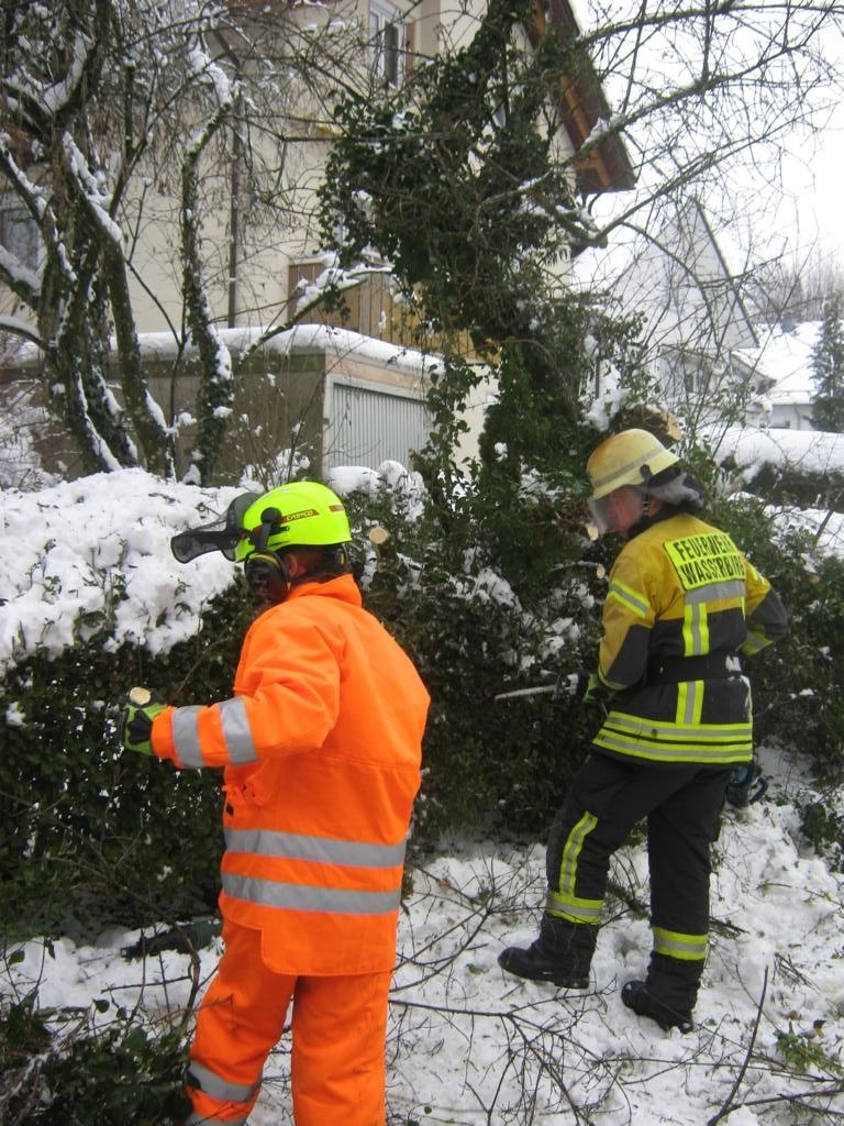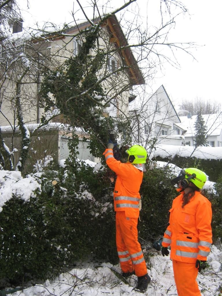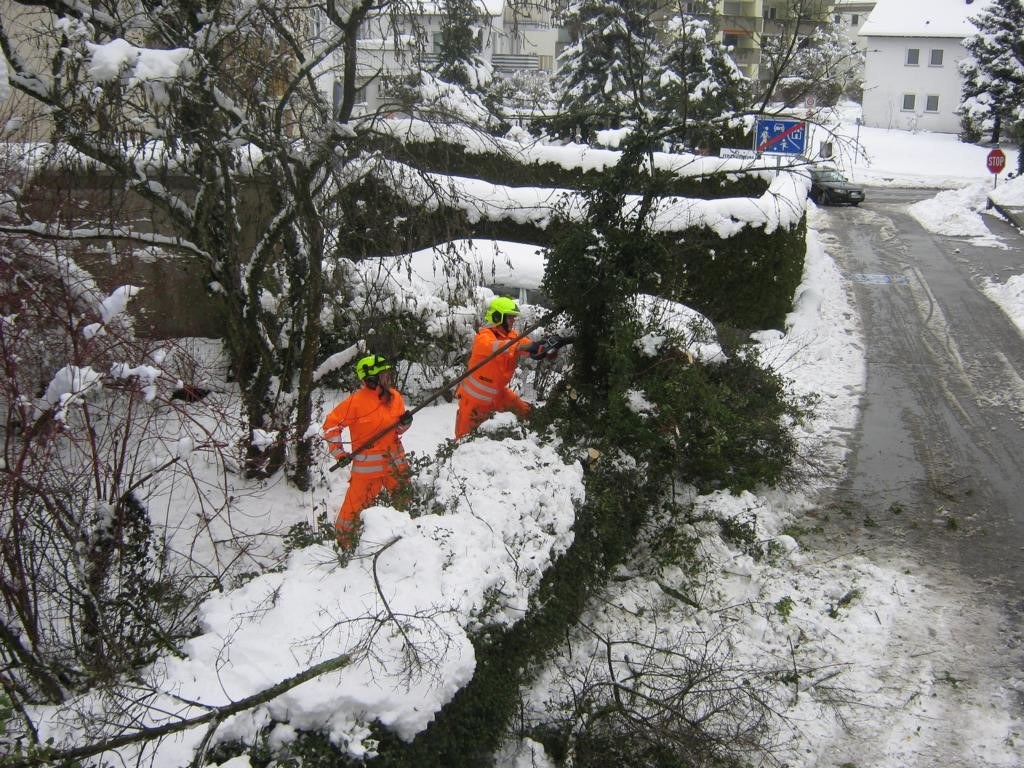 Am Nachmittag wurden dann noch einige Äste die über öffentliche Straßen ragen vom Schnee befreit und ein umgestürzter Baum in der oberen Rainstraße entfernt. Die anschließende Nacht mit einsetzendem Regen verlief zum Glück ruhig.