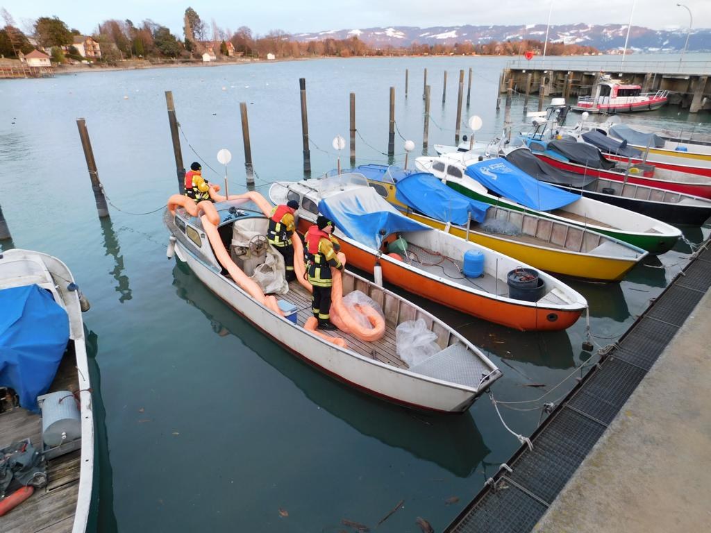 Mittlerweile wurde durch die Polizei ein Havarist ermittelt bei dem ein Schaden vorliegt. Durch die Feuerwehr wurde der Havarist mit einer saugfähigen Ölsperre umschlossen so das kein Öl mehr austritt, Restmengen an Diesel wurden aufgenommen. Die weiteren Maßnahmen übernimmt der Bootseigner. Der Schadensumfang und Schadensursache wird durch die Wasserschutzpolizei ermittelt. Nach einer guten Stunde war der Einsatz beendet.