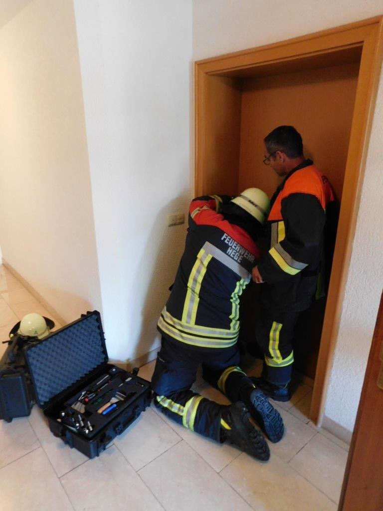 Nach Rücksprache mit der Polizei wurde die Feuerwehr Hege mit einem Fahrzeug dazu alarmiert da diese seit kurzem über eine spezielle Fräse zur Türöffnung verfügt und somit der Schaden für den Wohnungseigentümer am geringsten gehalten werden konnte.