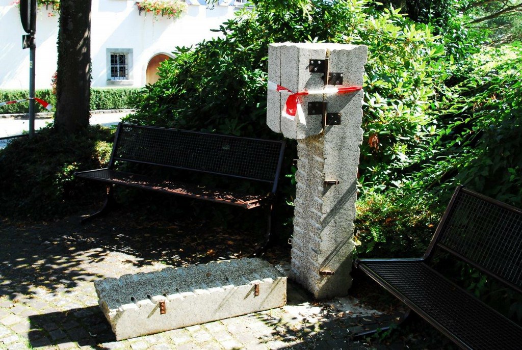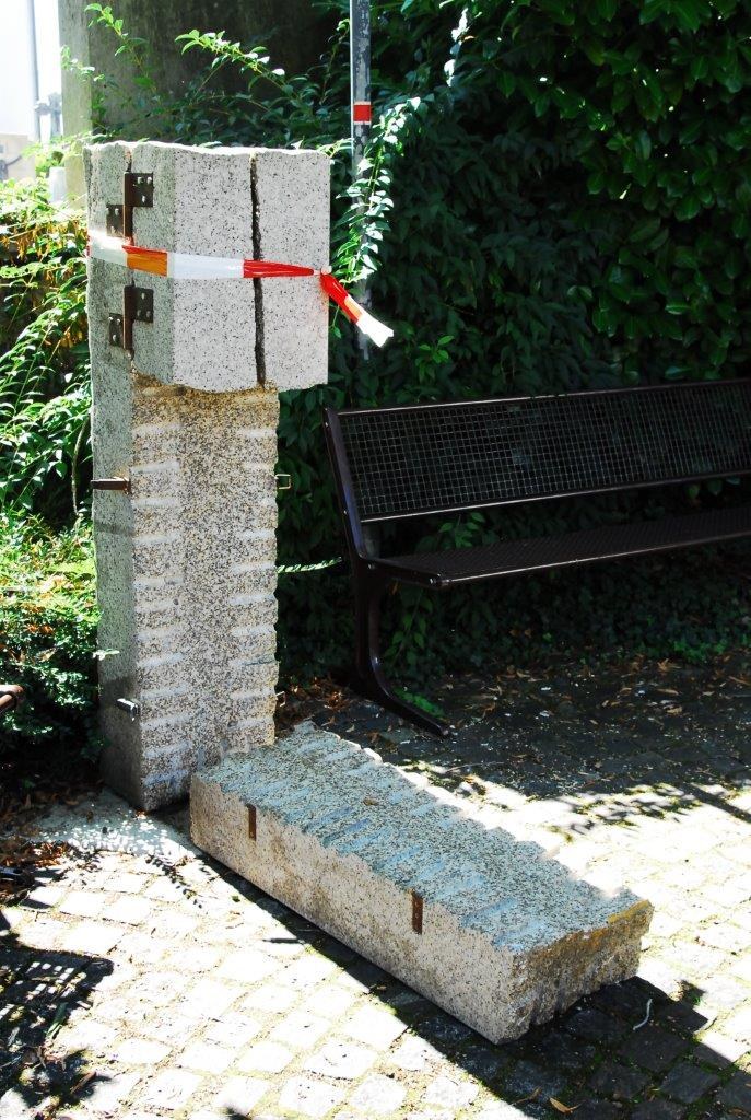 Ein Teil eines Kunstwerks aus Granit war umgestürzt und hatte eine Person schwer im Beinbereich verletzt. Der Verletzte wurde bereits vom Helfer vor Ort Nonnenhorn und dem Rettungsdienst des BRK Lindau versorgt, die Unglücksstelle wurde von der Feuerwehr Wasserburg abgesperrt so das keine weitere Personen zu Schaden kommen können. Die weiteren Aufräumarbeiten übernimmt der Bauhof.