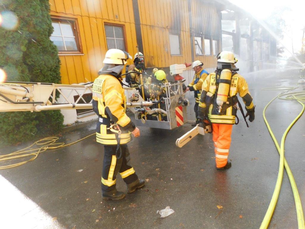 Als die Feuerwehr Wasserburg am 14.11.2019 um 8.55 Uhr mit dem Stichwort "B4 Brand Industrie/Gewerbe" alarmiert wurde, war bereits auf der Anfahrt klar, dass es sich um einen der größeren Einsätze in der Geschichte der Feuerwehr Wasserburg handelt.
