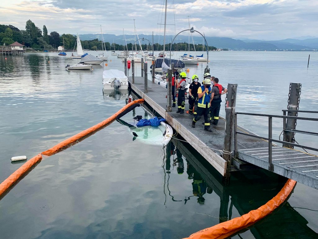 Am 14.08.2020 um 18:23 wurde die Feuerwehr Wasserburg zu einem untergegangenen Boot im Hafen von Wasserburg alarmiert.