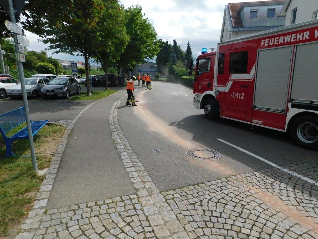 Am Sonntag den 23.08.2020 um 11.15 Uhr wurde die Feuerwehr Wasserburg zu einer Ölspur ins Ortsgebiet alarmiert. Ein Auto hatte durch einen technischen Defekt Getriebeöl verloren und der Eigentümer hatte sich sofort gemeldet.