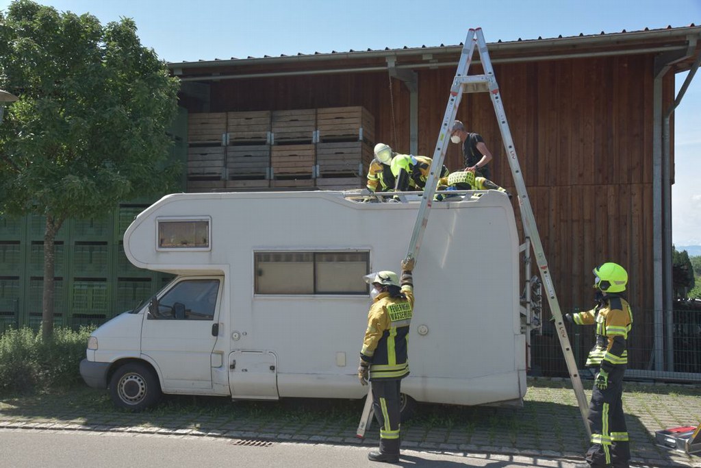 Am 17.06.2021 gegen 11.15 Uhr wurden wir zusammen mit der Polizei und dem Rettungsdienst zu einer eiligen Türöffnung an einem Wohnmobil in die Ladestraße gerufen.