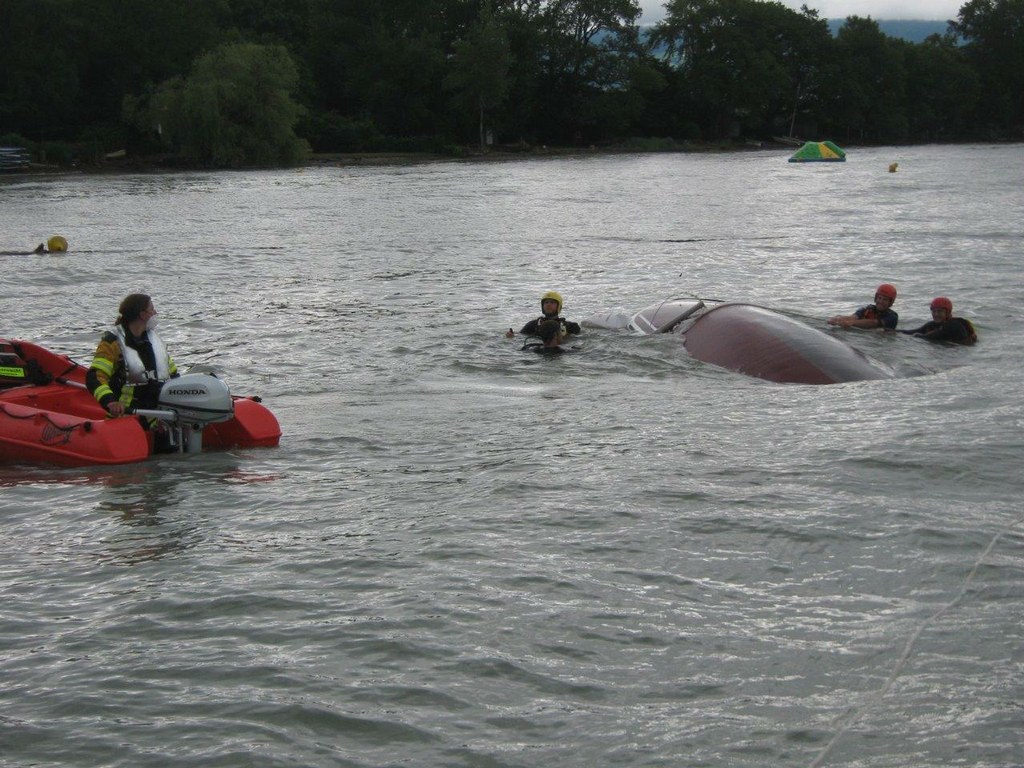 Neben einem Baum auf Fahrbahn und mehreren kleineren gekenterten und losgerissenen Booten lag das Hauptaugenmerk auf einem gekenterten und weiteren Verlauf gesunkenem Segelboot.