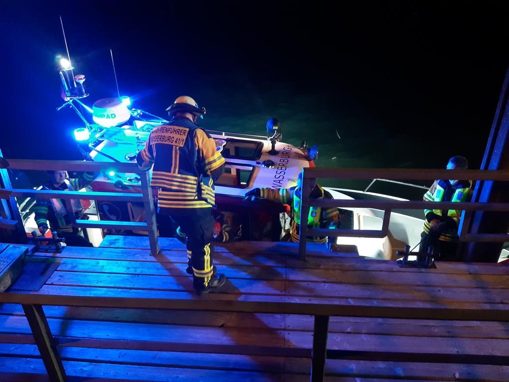 Feuerwehr Wasserburg, 3 Fahrzeuge, 1 Mehrzweckboot, 15 Mann