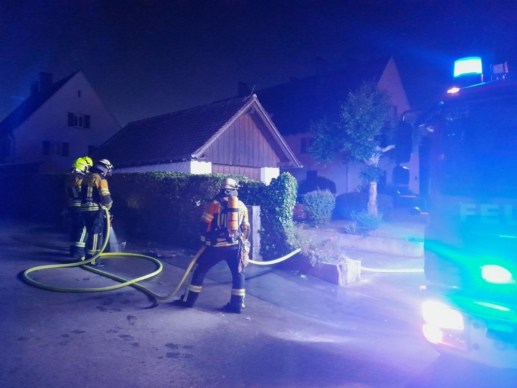 Feuerwehr Wasserburg, 2 Fahrzeuge mit 18 Mann, weitere 6 Mann in Bereitschaft am Gerätehaus