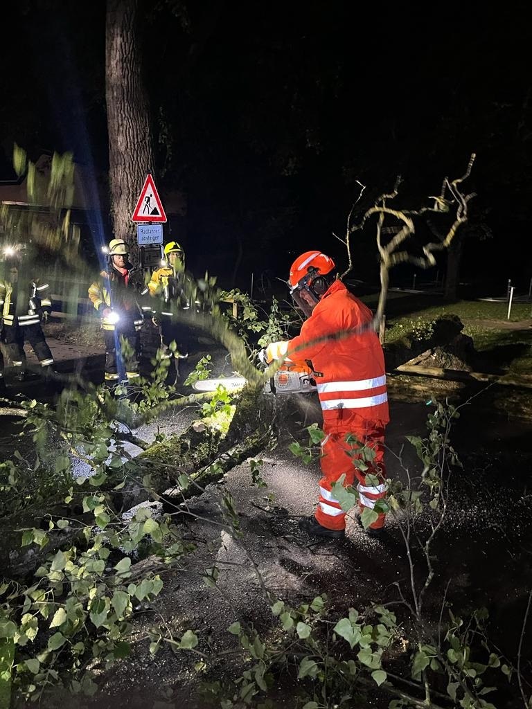 Wir waren mit 2 Fahrzeugen und 12 Mann von 22.45 Uhr bis 01.15 Uhr im Einsatz. Die weiteren Aufräumarbeiten wurden am 12.07. durch den Bauhof bzw. die jeweiligen Eigentümer übernommen.