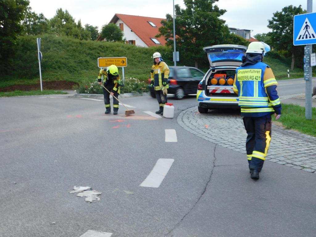 Am Mittwoch, 19.07.2023 um 06.18 Uhr wurden wir zu einem Verkehrsunfall im Kreisverkehr Mittelseemoos alarmiert.