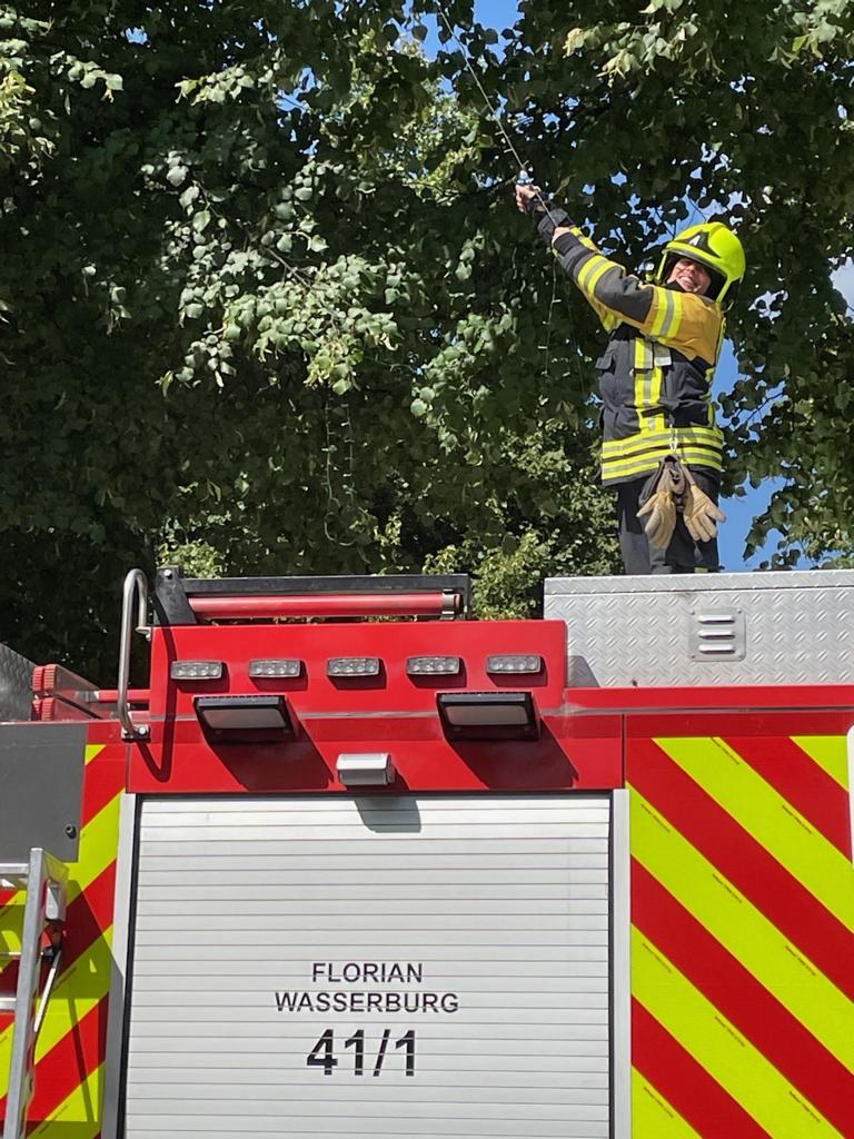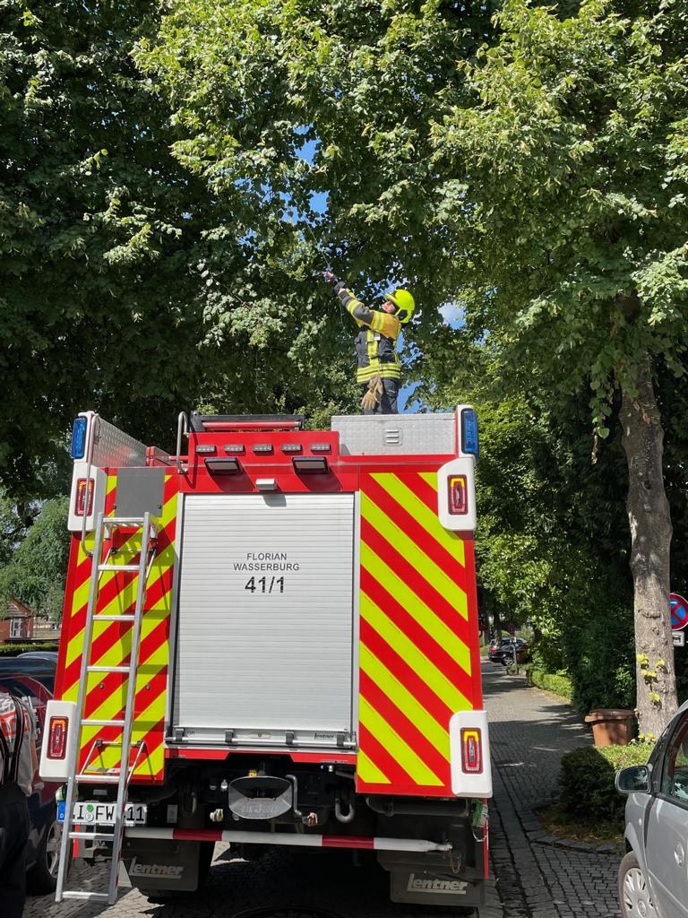 Direkt im Anschluss wurde noch eine von einem Baum in den Straßenraum hängende Beleuchtungsgirlande gemeldet, diese wurde von der Besatzung eines Löschfahrzeuges kurzerhand beseitigt.