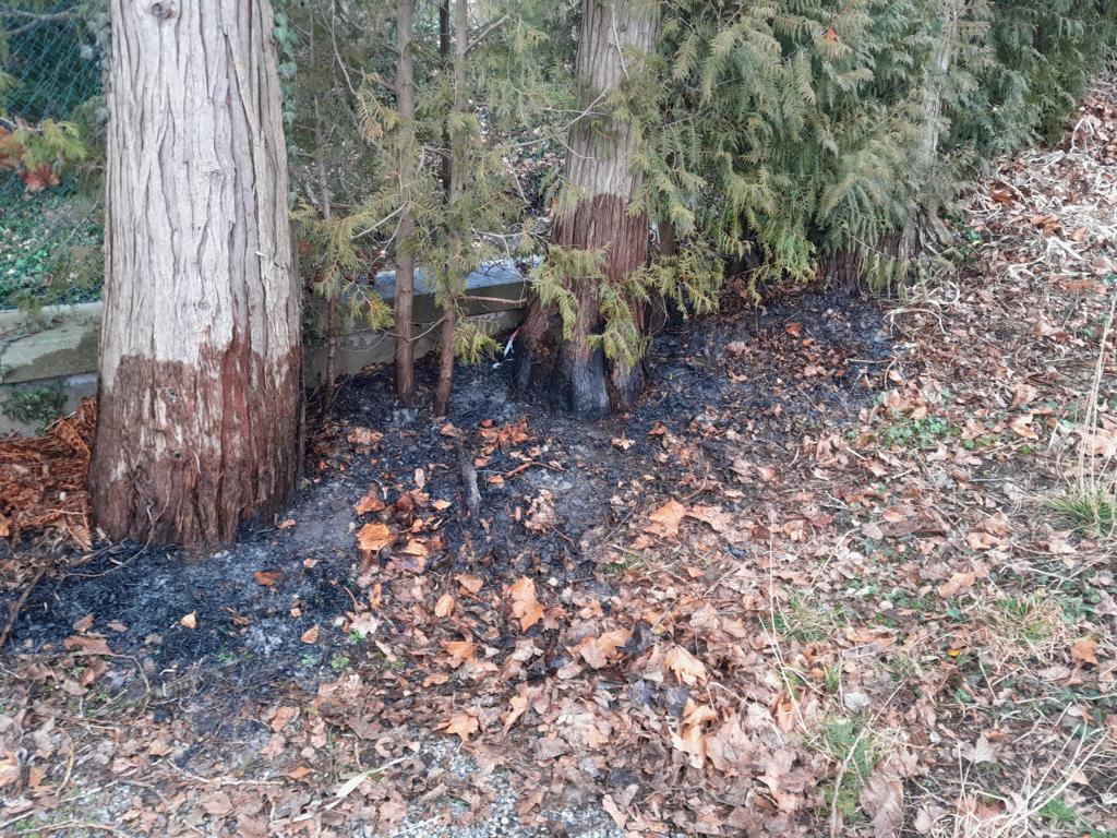 Auf einem Seegrundstück waren Aschereste entsorgt worden, da sich dabei auch noch Glut befand entzündete sich eine Stunde später Laub und Unrat.