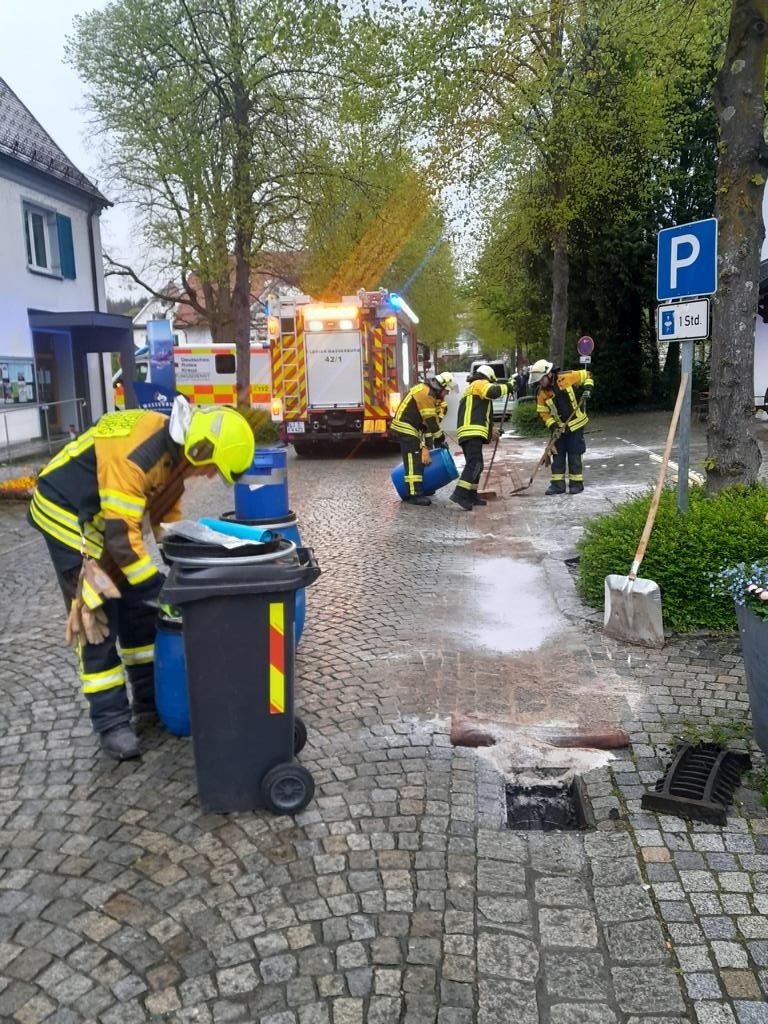 Von der Feuerwehr Wasserburg wurde sofort nach eintreffen großflächig Ölbinder eingesetzt um das Öl aufzunehmen, der Kanaleinlauf wurde abgedichtet und ein Trupp erkundete die Kanalisation auf weitere Verschmutzungen. Die PKW-Lenkerin wurde durch den ebenfalls alarmierten Rettungswagen aus Kressbronn versorgt.