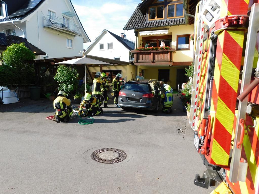 Vor Ort bestätigte sich die gemeldete Lage. Alle Fahrzeugtüren, sowie die Heckklappe, waren verriegelt und der Schlüssel befand sich im Fahrzeuginneren.