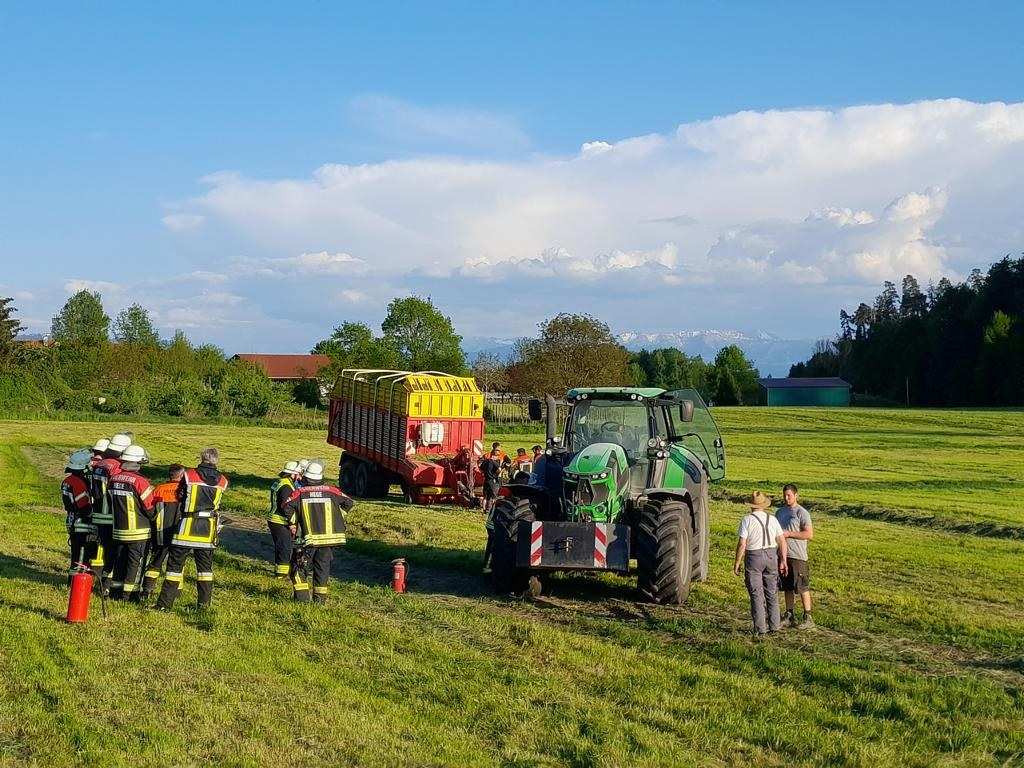 Mit dem Stichwort B3 - Brand landwirtschaftliche Maschine wurden wir am 29.04.2025 um 18.52 Uhr in den Ortsteil Hengnau gerufen. Bei Erntearbeiten war es an einem Traktor unter der Kabine zu einem Schmorbrand an verschiedenen Leitungen gekommen.
