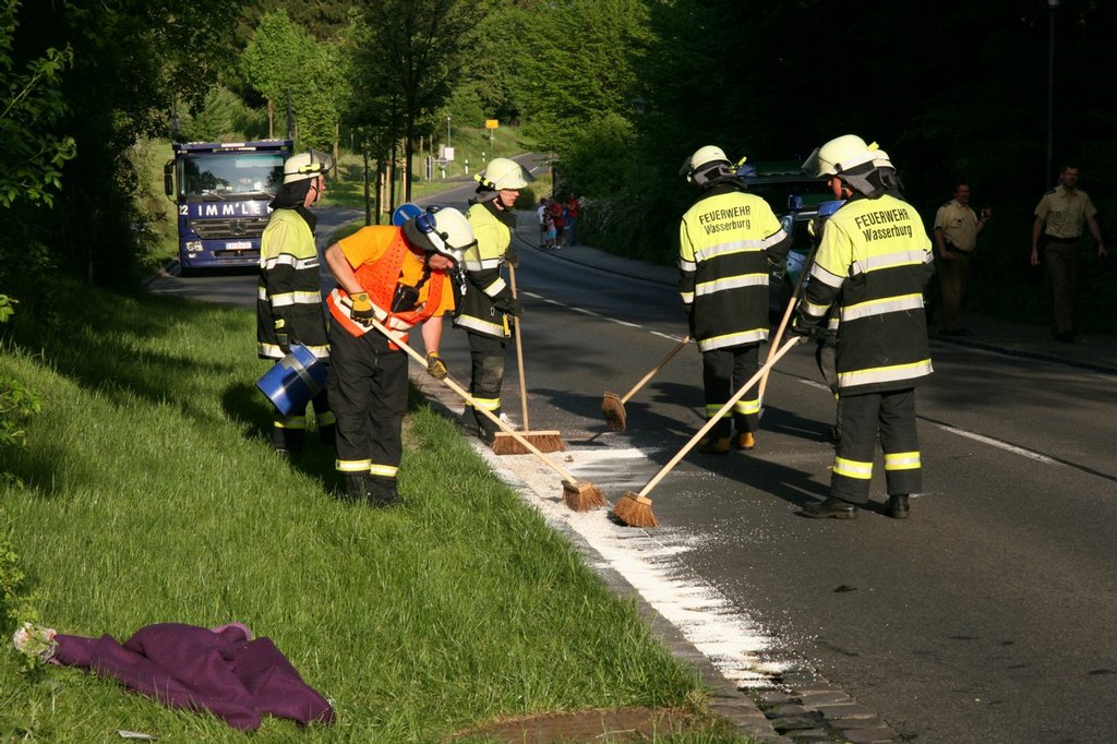 Nach dem Abtransport der Verletzten wurde durch ein Mitglied der FF Wasserburg der Notarztwagen ans Krankenhaus Lindau verbracht und durch die restliche Mannschaft die Straße von ausgelaufenen Flüssigkeiten und Wrackteilen gereinigt. Nach dem Abtransport durch einen örtlichen Abschleppunternehmer wurde die Einsatzstelle mit 2 Ölspurschildern gesichert und an die Polizei übergeben welche die Straße wieder frei gab.