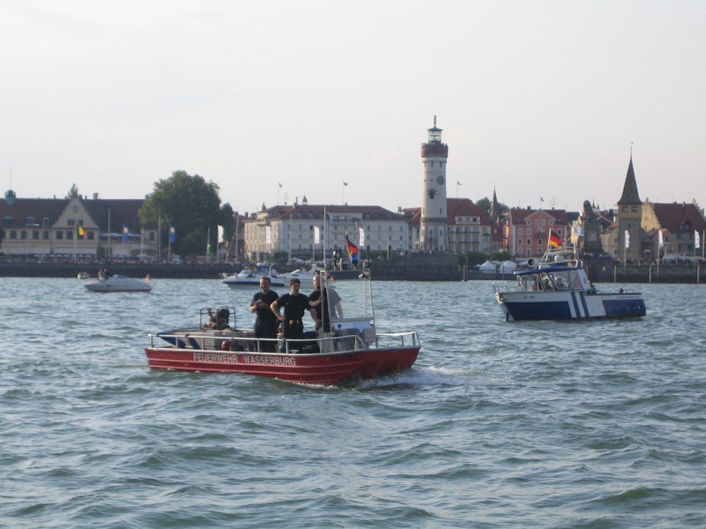 Das Boot der Feuerwehr Wasserburg "Richl" hatte die Aufgabe der Schiffsbegleitung im Sektor "A". Dieser Sektor reichte von der Startlinie aus bis zur gedachten Linie "Langenargen - Rheinspitz". Wir begleiteten die Regatta bis Langenargen. Dort angekommen war der Einsatz gegen 22.30 beendet und wir fuhren wieder in den Wasserburger Hafen auf Bereitschaft.