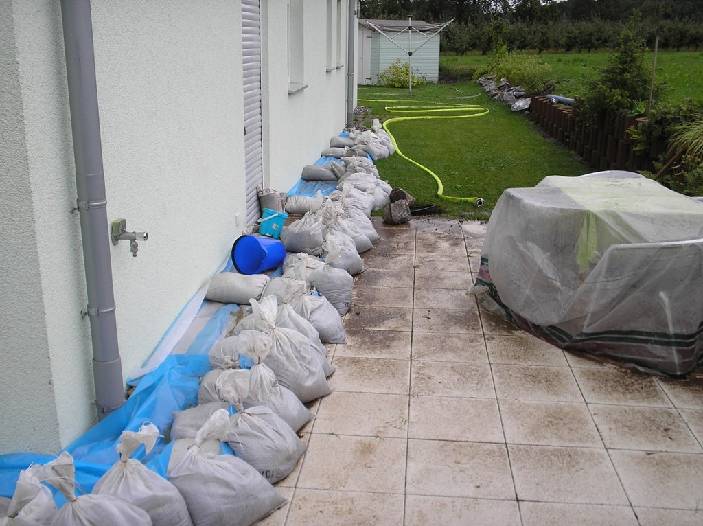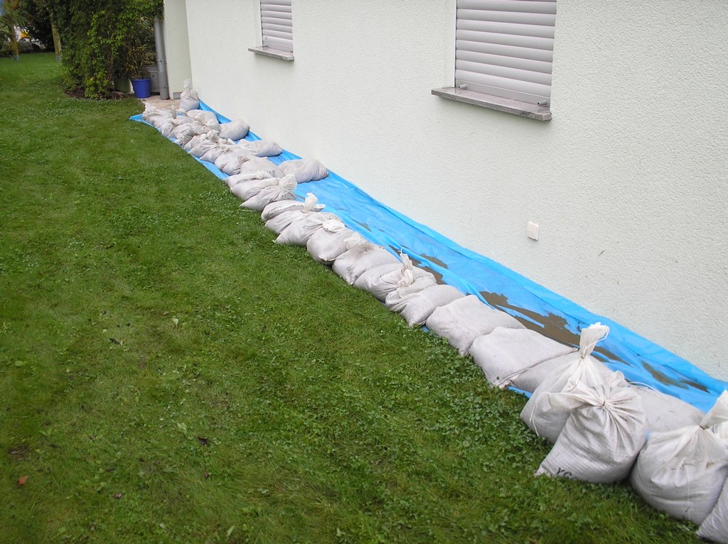 Hier drohten mehrere Häuser durch nicht ablaufendes Oberflächenwasser überflutet zu werden. Mittels Sandsäcken und Tauchpumpen konnte die Gefahr abgewendet werden.