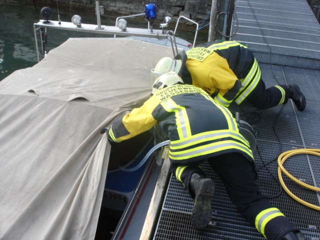 Zum zweiten Einsatz innerhalb von 24 Stunden wurde heute die Feuerwehr Wasserburg gerufen. Im Wasserburger Hafen ist ein Motorboot aus ungeklärter Ursache Vollgelaufen und auf Grund gesunken. Zum Glück ist der Wasserstand an dem Liegeplatz nicht allzu hoch, so dass das Boot nicht komplett unterging.