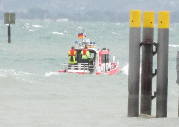 Angestellte des ‘Hegestrand 3′ in Wasserburg meldeten 2 Ruderer, welche sich zwar im Boot befänden, aufgrund der Witterungsbedingungen jedoch nicht mehr sicher anlanden könnten. Der Einsatzleiter Wasserrettungsdienst schickte daher die Wasserwachtboote aus Nonnenhorn und Lindau ins Gebiet des Malerwinkels. Landseitig machten sich sofort Mitglieder der Wasserwacht Wasserburg auf den Weg das Ufer abzusuchen.