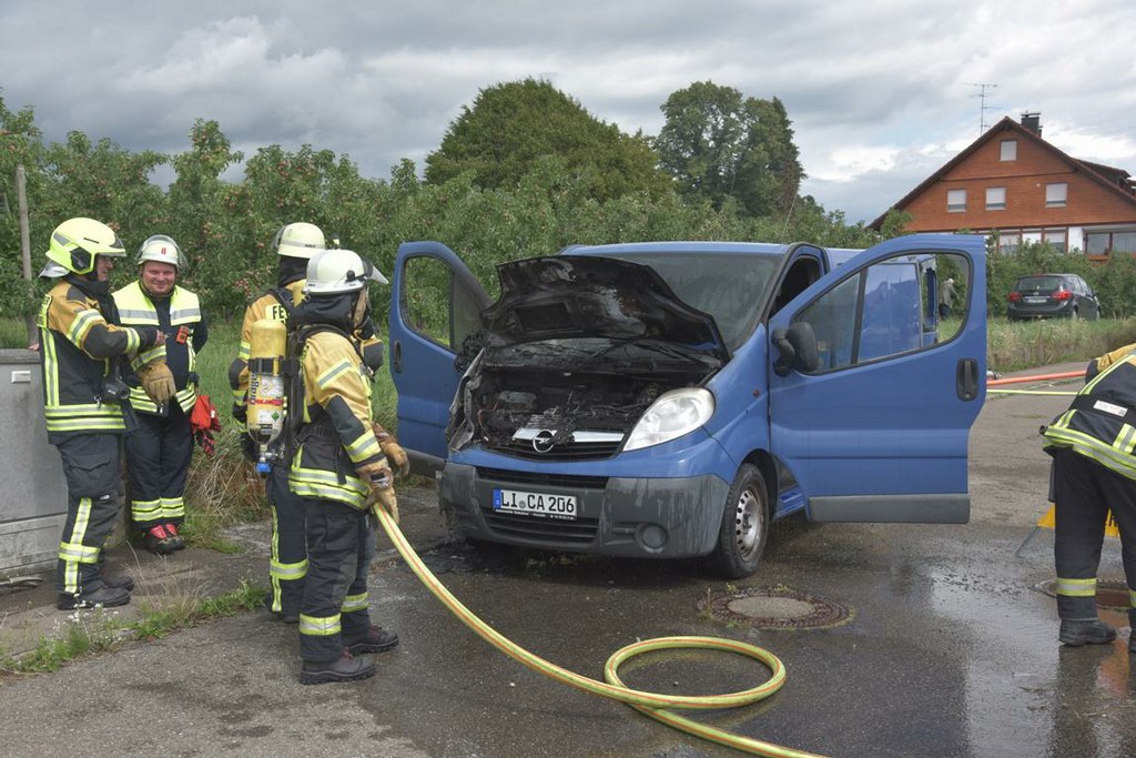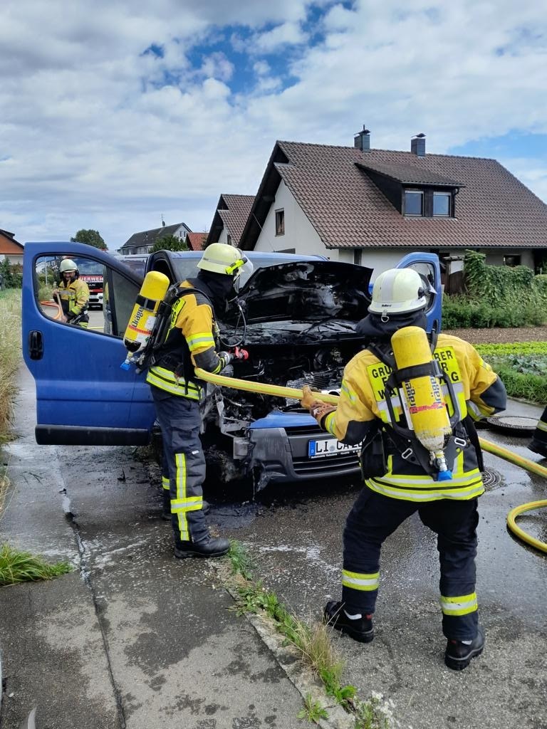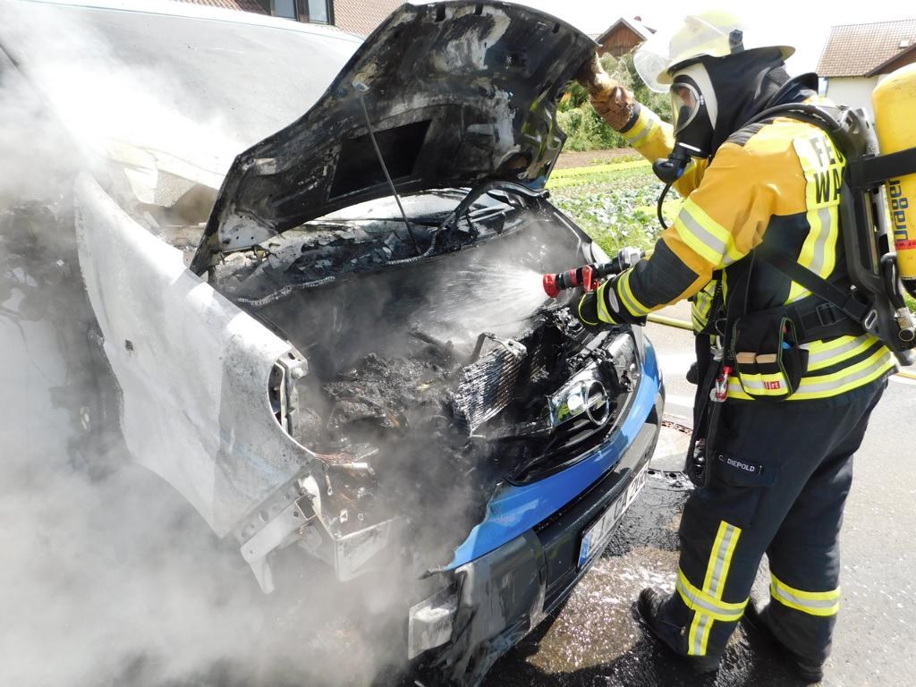 Mit einem C-Rohr unter Atemschutz war das Feuer schnell unter Kontrolle, im Nachgang musste das Fahrzeug aber noch aufgebrochen werden, um nach eventuellen Gutnestern zu suchen und weitere Gefahren auszuschließen.