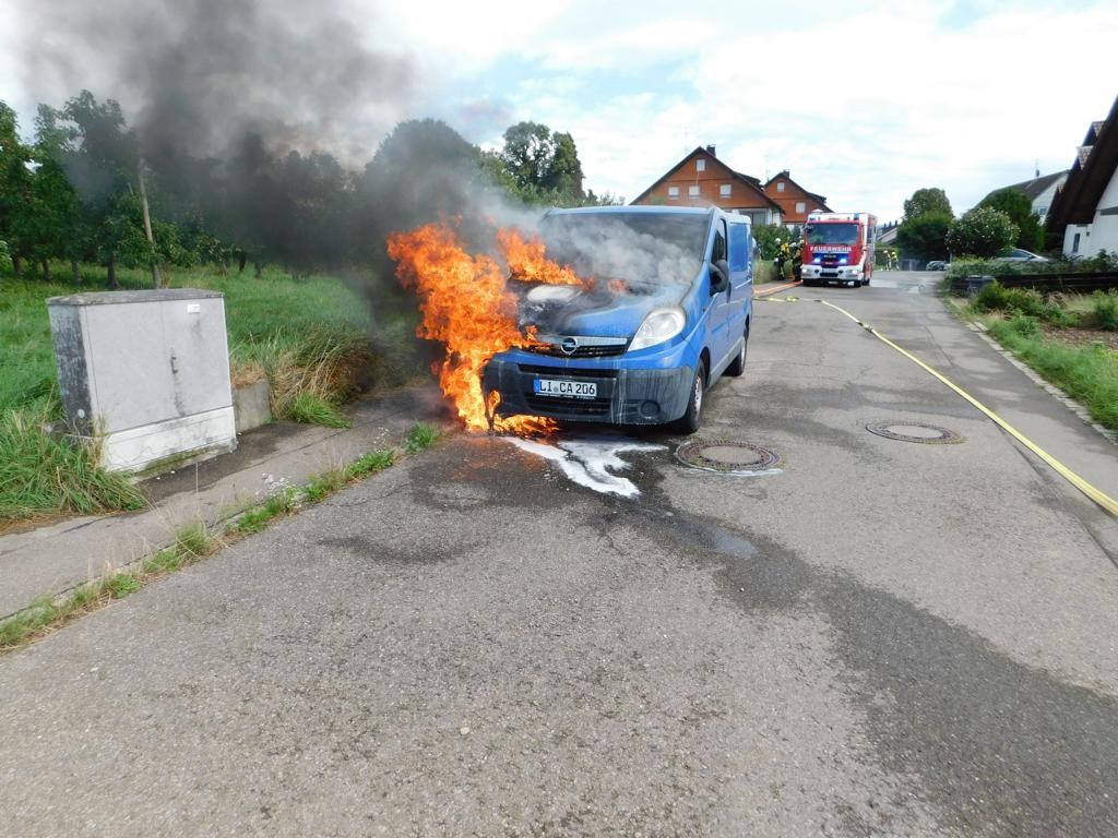 Um 14:42 Uhr wurden wir zusammen mit der Feuerwehr Hege in die Obere Ebenhalde alarmiert, ein Van hatte im Motorraum Feuer gefangen und Nachbarn hatten die