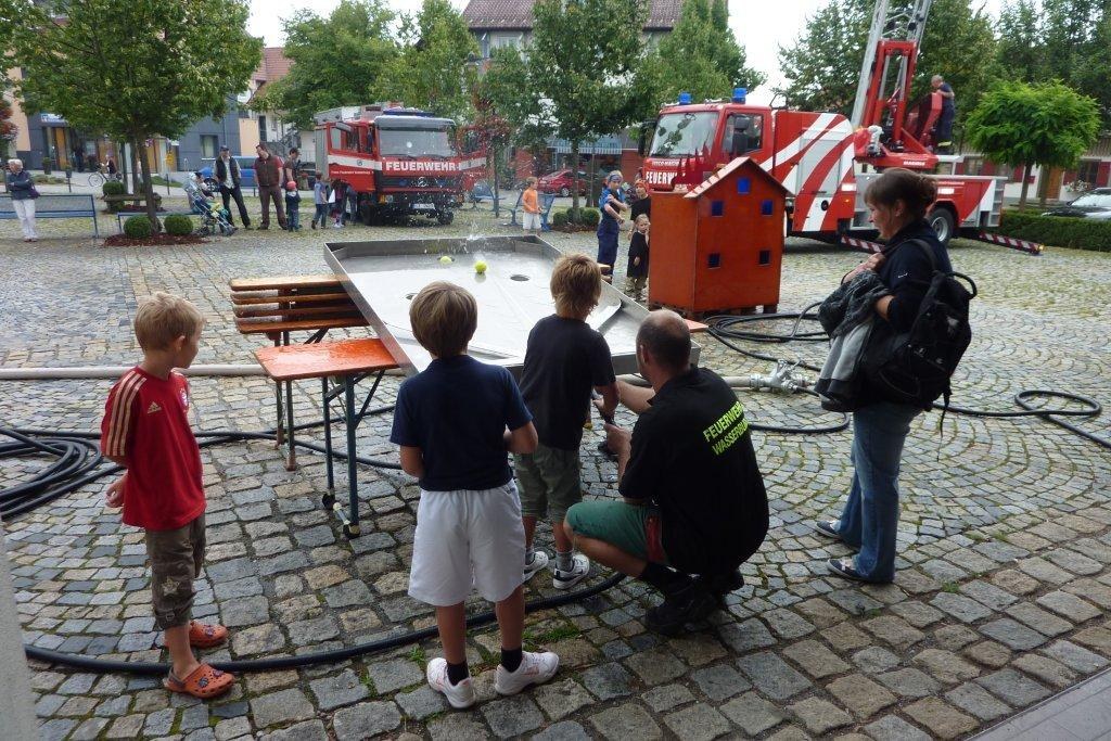 An diesem Tag wurden den Kindern wieder ein umfangreiches Programm angeboten. Lustige Wasserspiele, mit der Drehleiter hoch hinaus fahren, Basteln, Kasperletheater, Würstchen grillen, aber auch Besichtigung der Fahrzeuge und des Feuerhauses Wasserburg.