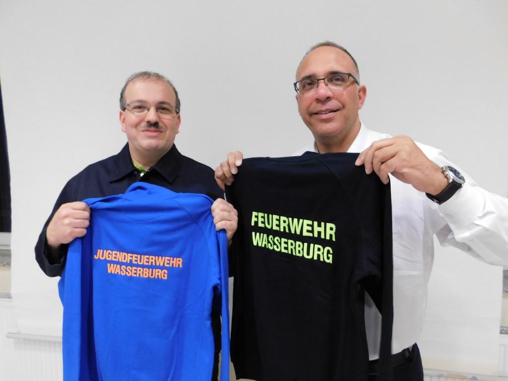 Der Vorsitzende des Fördervereins Angelo Lombardo konnte Pullover für die Jugendfeuerwehr und die aktiven Einsatzkräfte an den Kommandanten Christian Schorer übergeben, diese wurden bereits ausgegeben und erfreuen sich großer Beliebtheit.