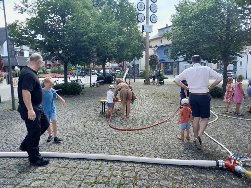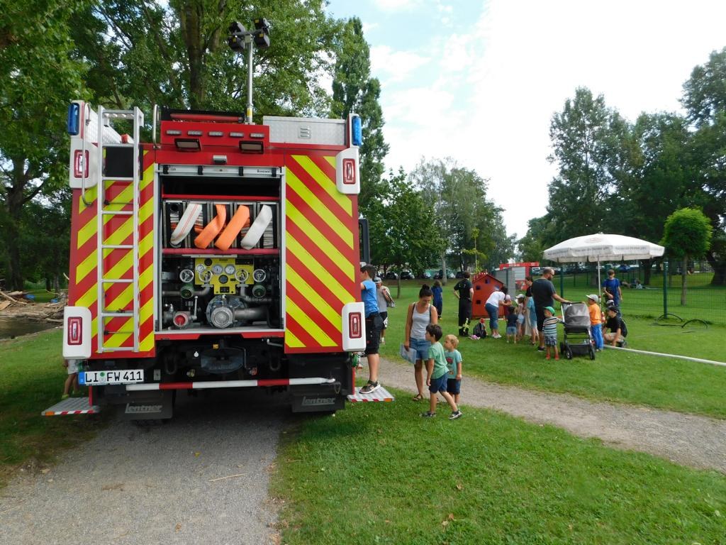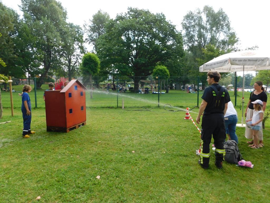 Weit über 100 Kinder waren in diesem Jahr wieder dabei, Spiel, Spaß und Spannung kam an den Stationen nicht zu kurz und die Wasserspiele sorgten bei heißem Sommerwetter für eine willkommene Abkühlung. Wer es etwas ruhiger und kühler wollte, konnte im Feuerhaus passend zum Wetter einen Fächer basteln und bemalen, aber auch die Bastelbögen mit Feuerwehrautos fanden wieder reißenden Absatz.